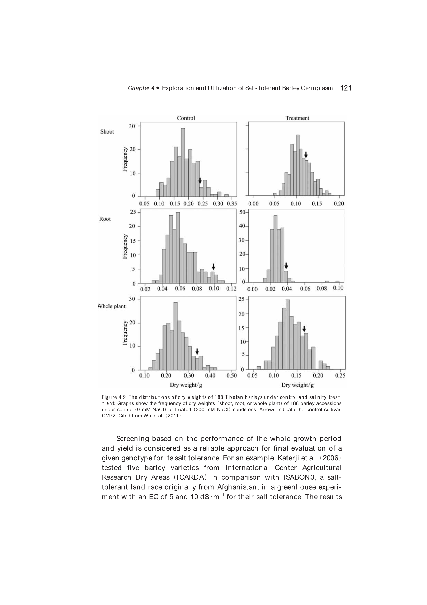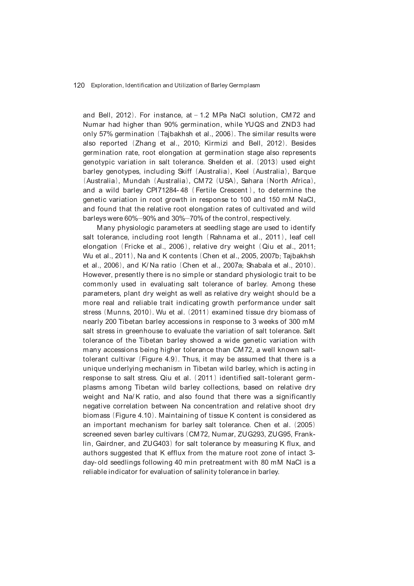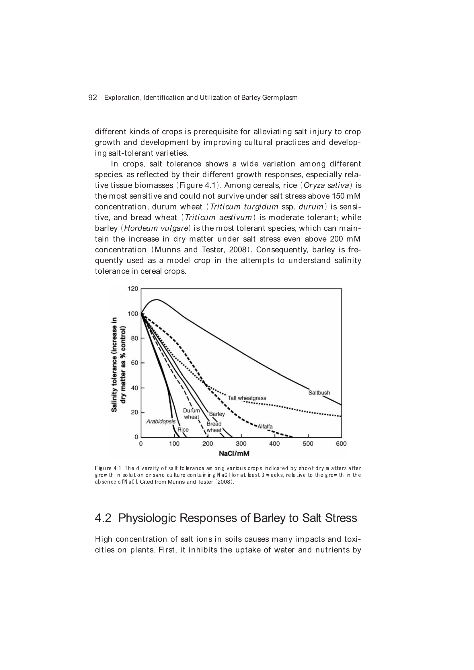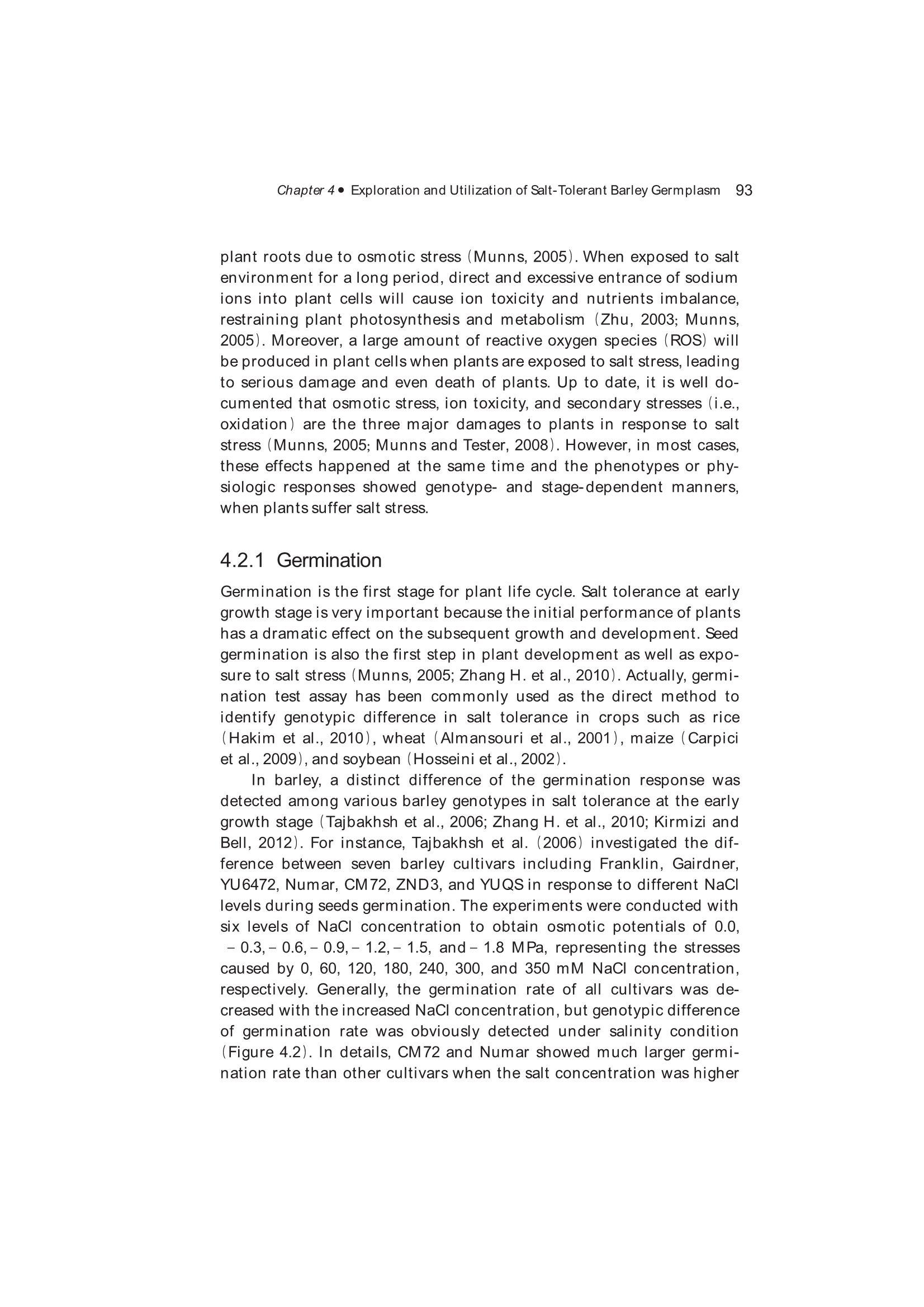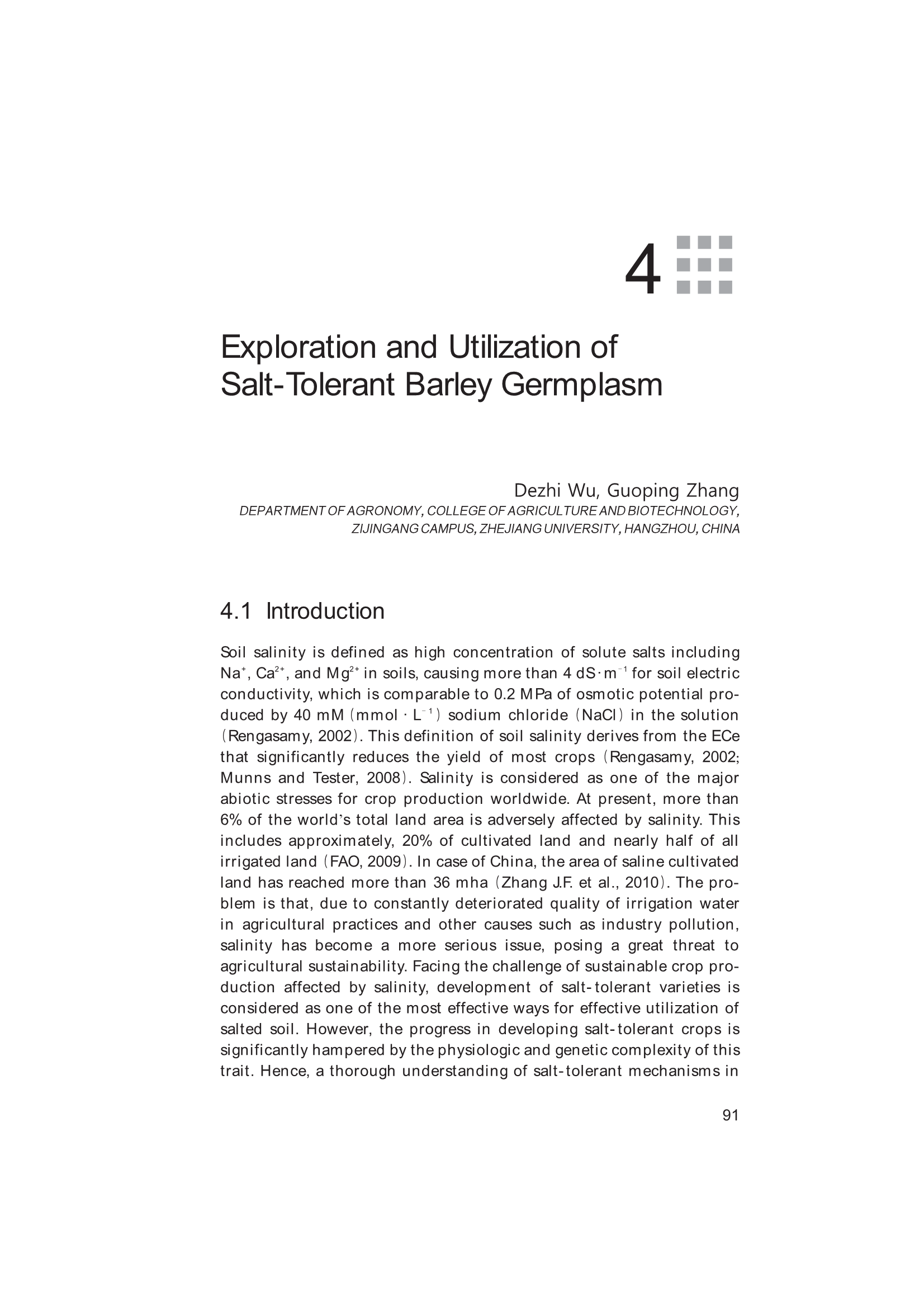 Exploration, Identification and Utilization of Barley Germplasm(《大麦种质资源创新与利用》):第4章 Exploration and Utilization of Salt-Tolerant Barley Germplasm