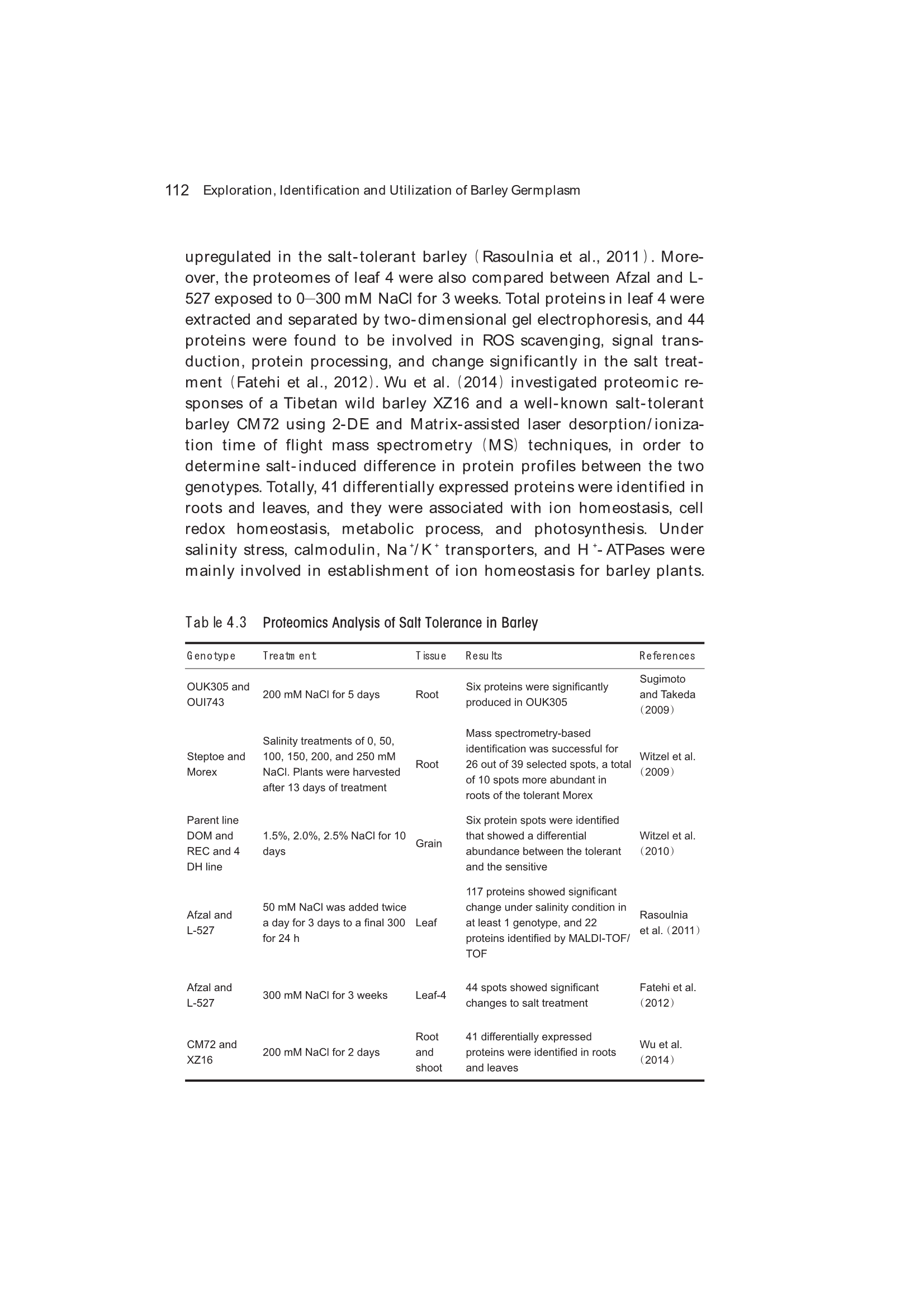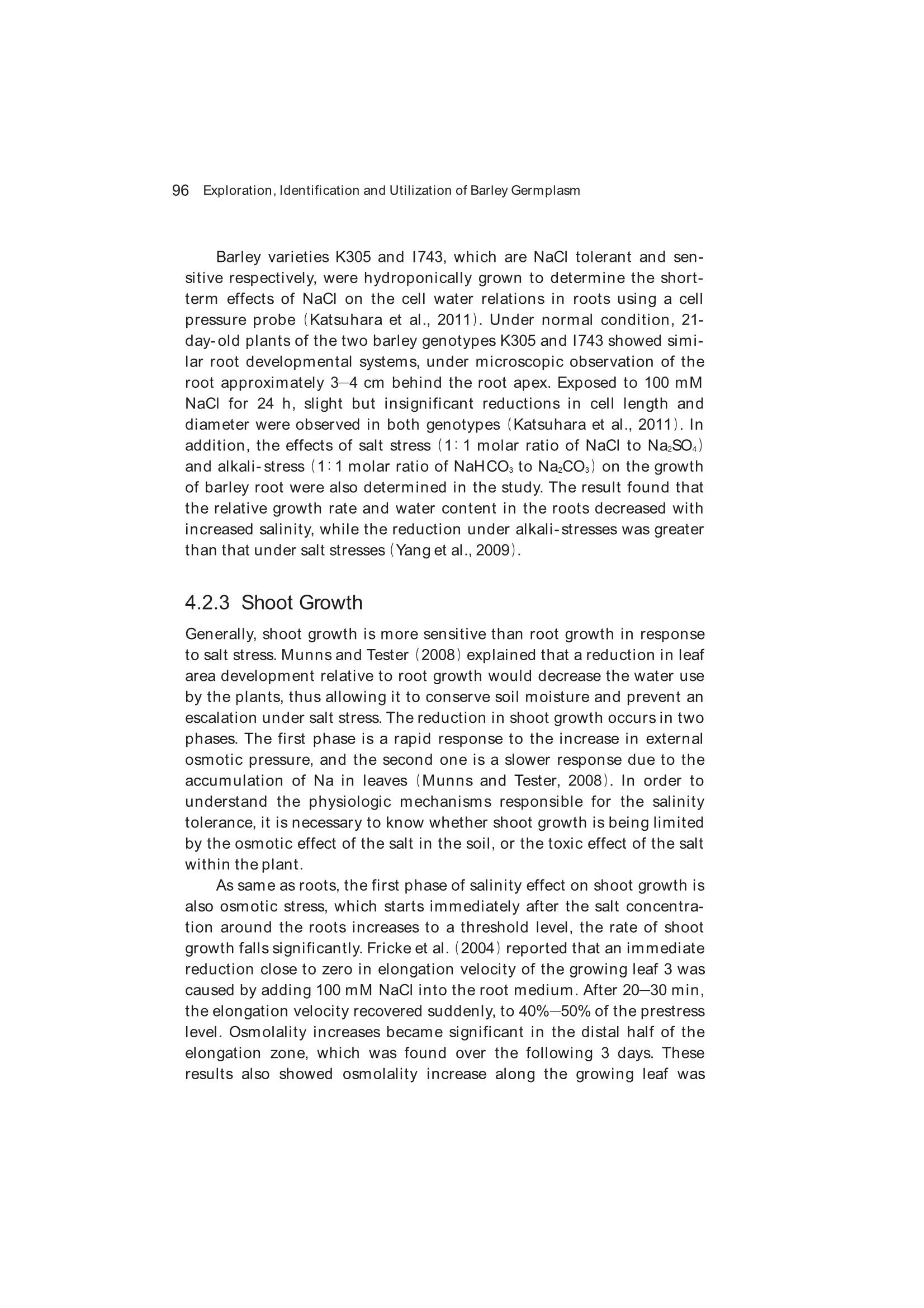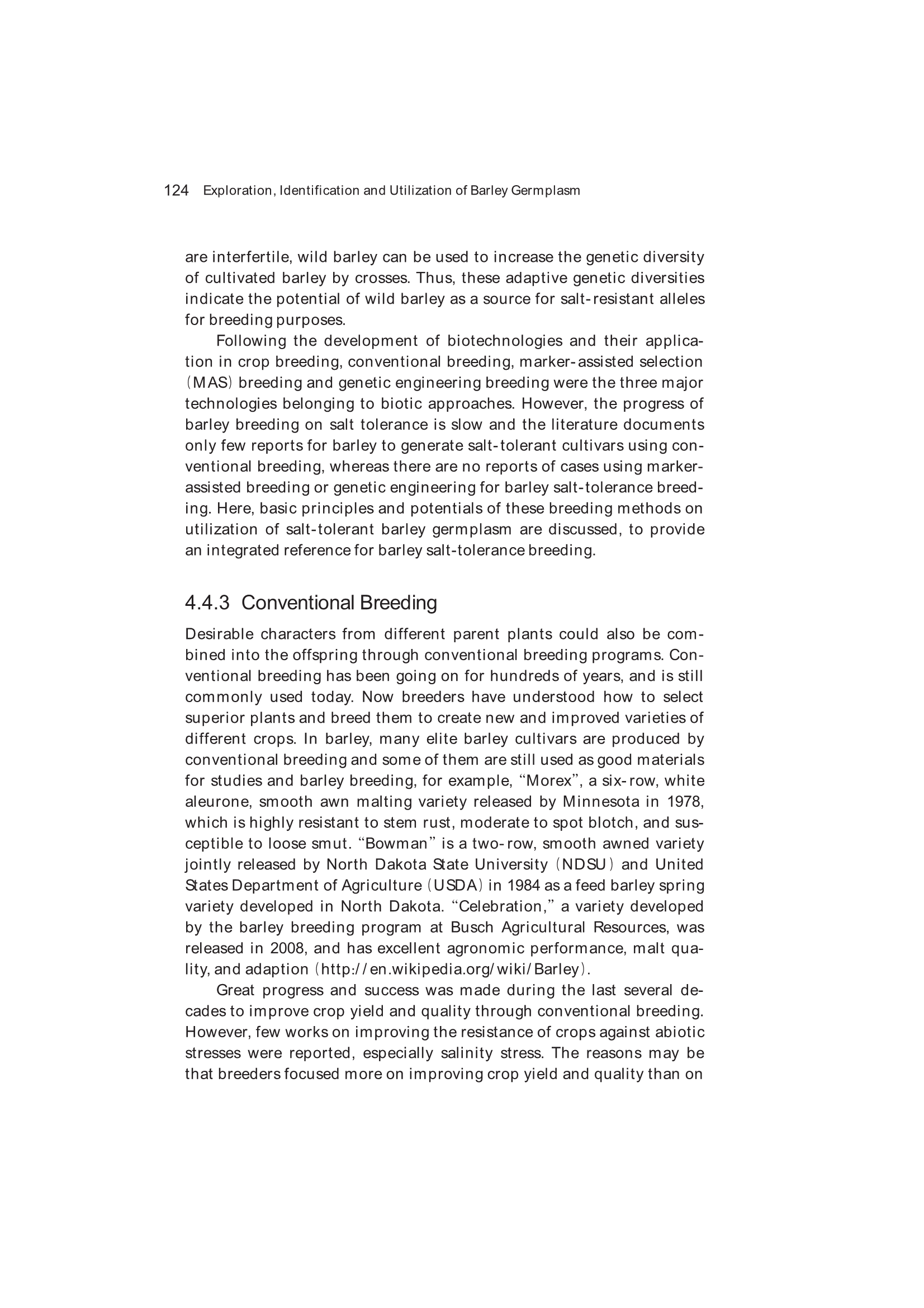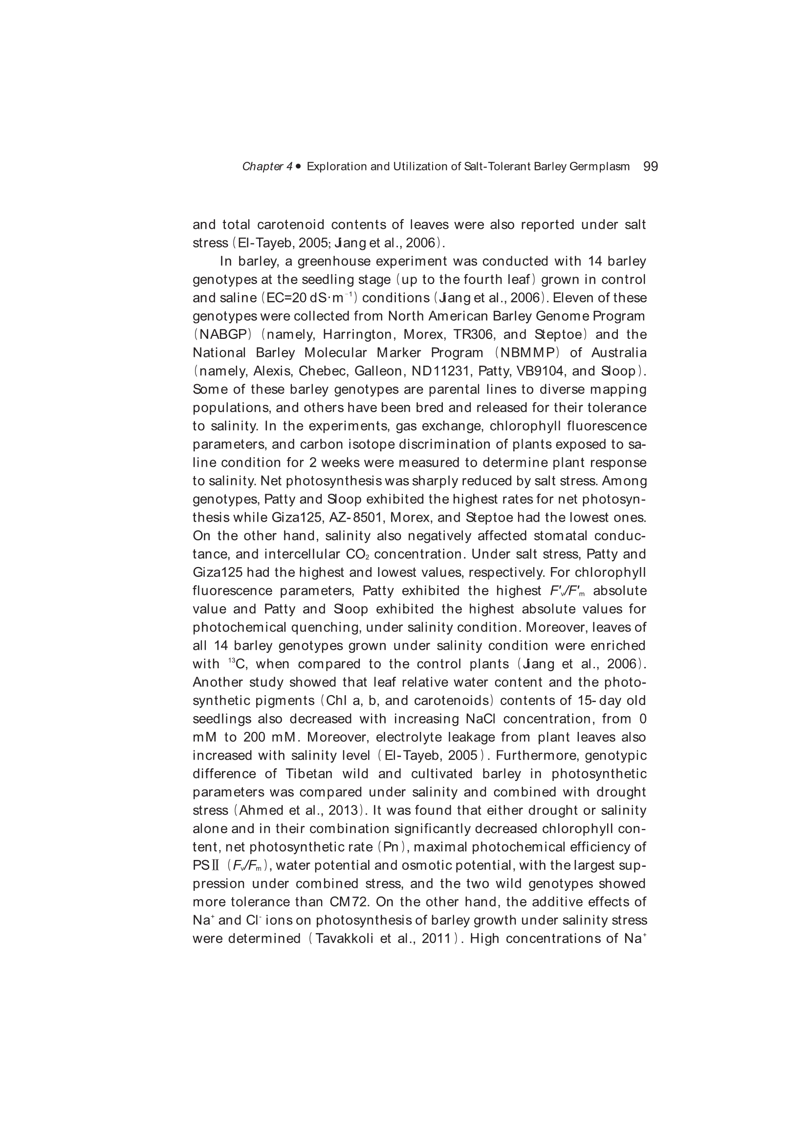 Exploration, Identification and Utilization of Barley Germplasm(《大麦种质资源创新与利用》):第4章 Exploration and Utilization of Salt-Tolerant Barley Germplasm