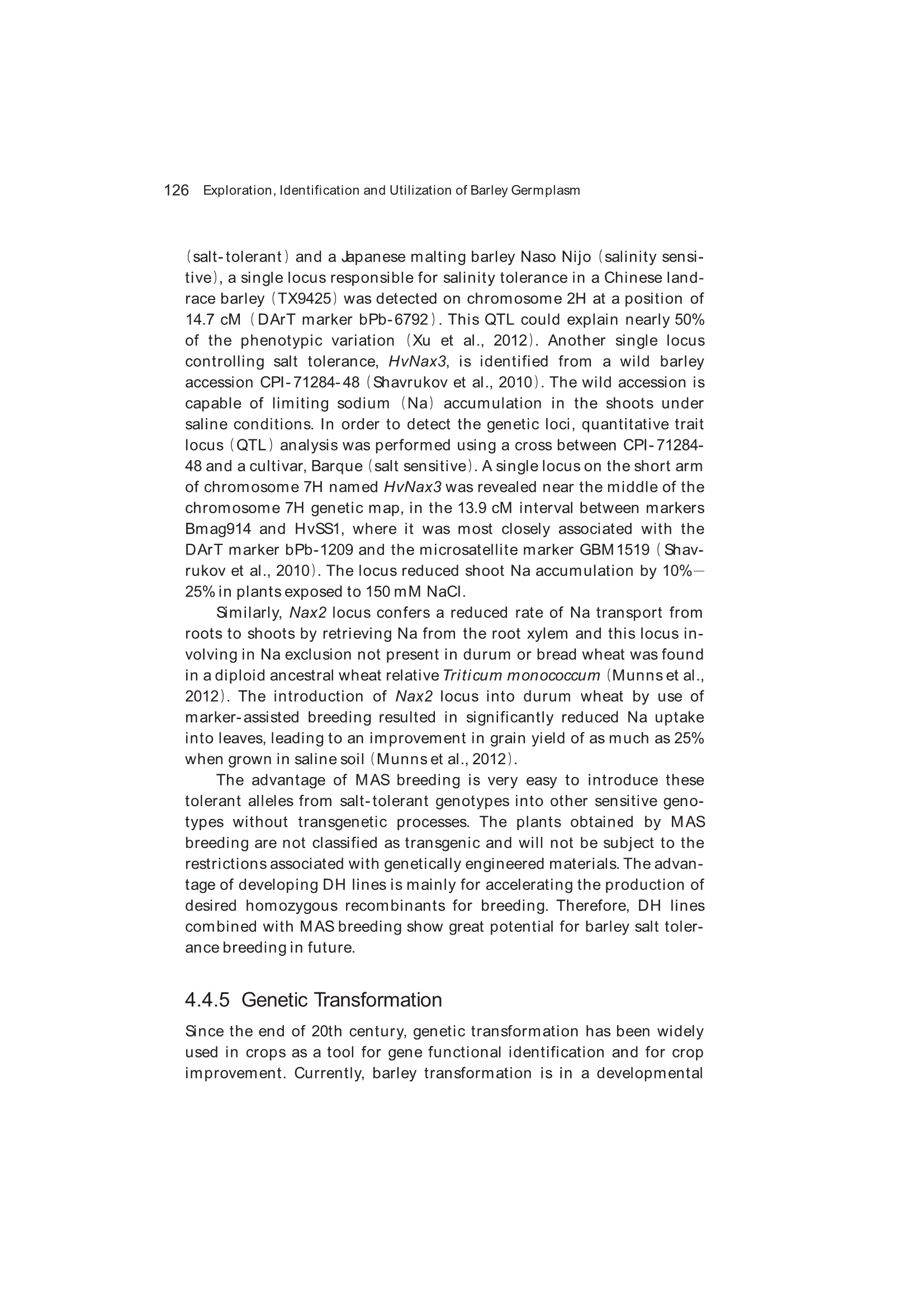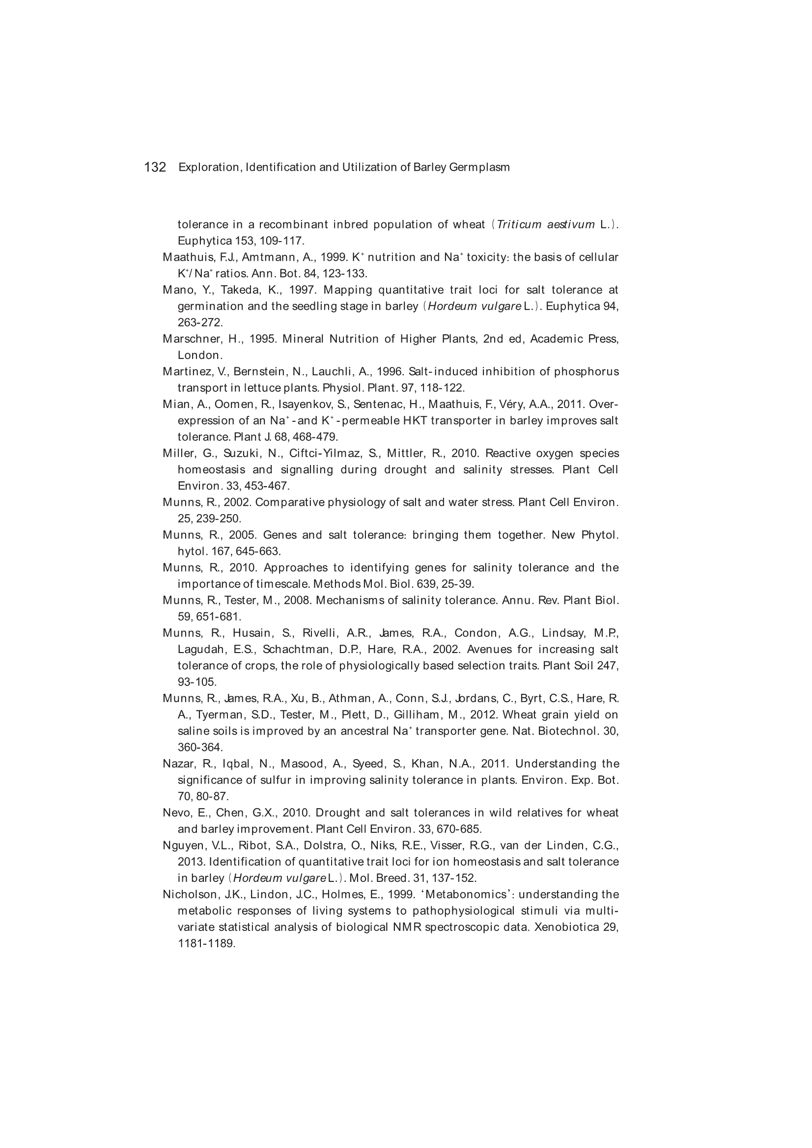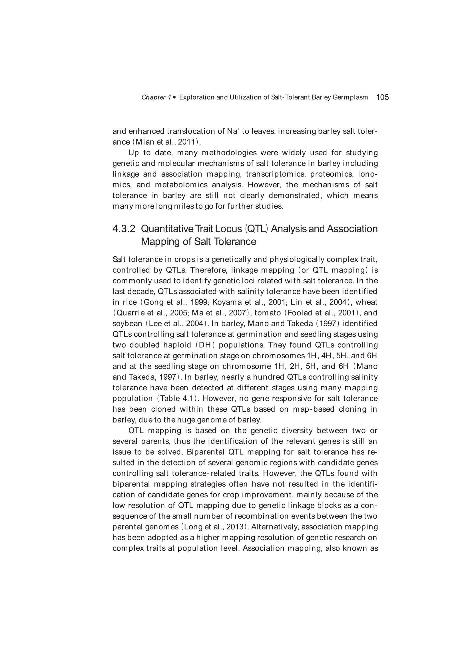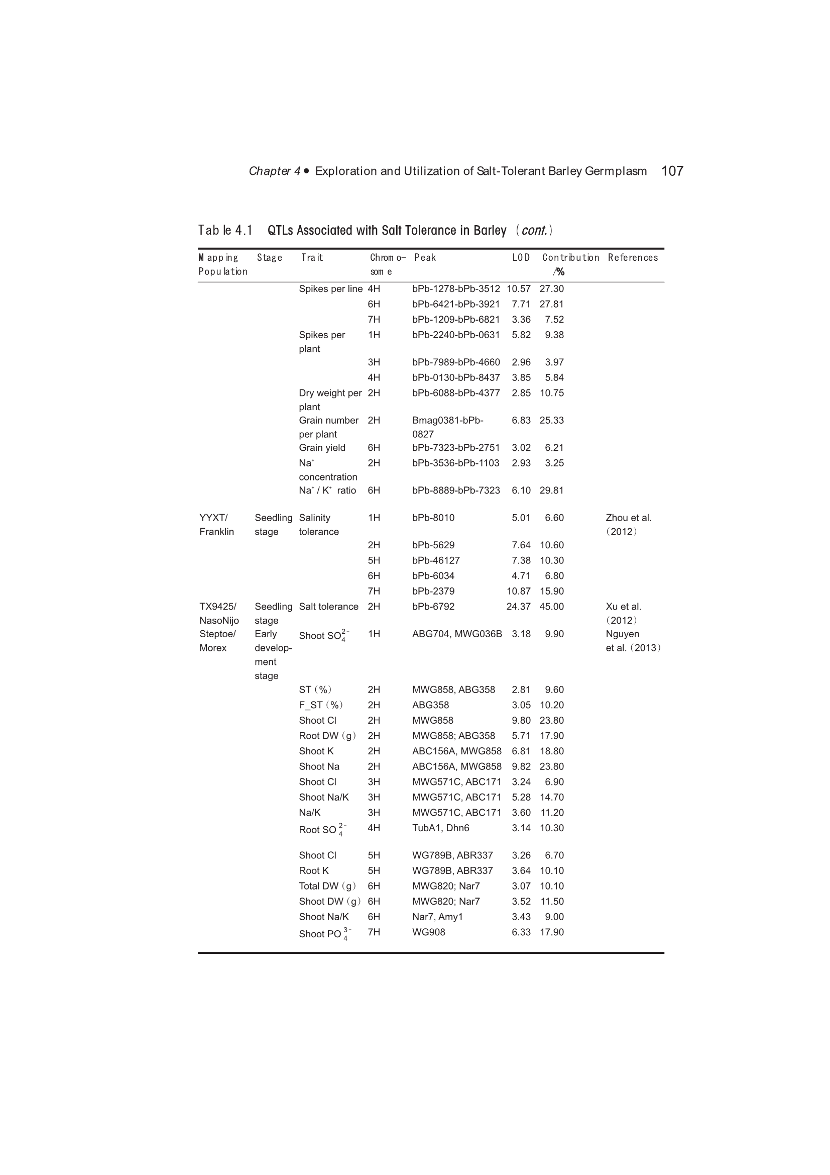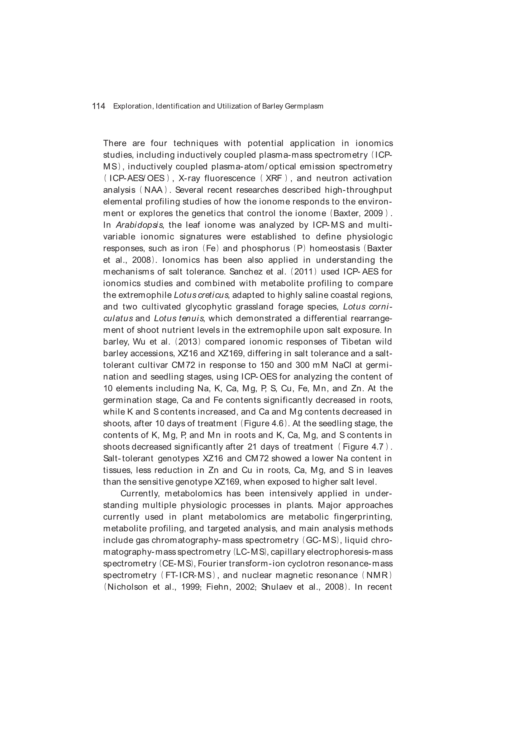 Exploration, Identification and Utilization of Barley Germplasm(《大麦种质资源创新与利用》):第4章 Exploration and Utilization of Salt-Tolerant Barley Germplasm