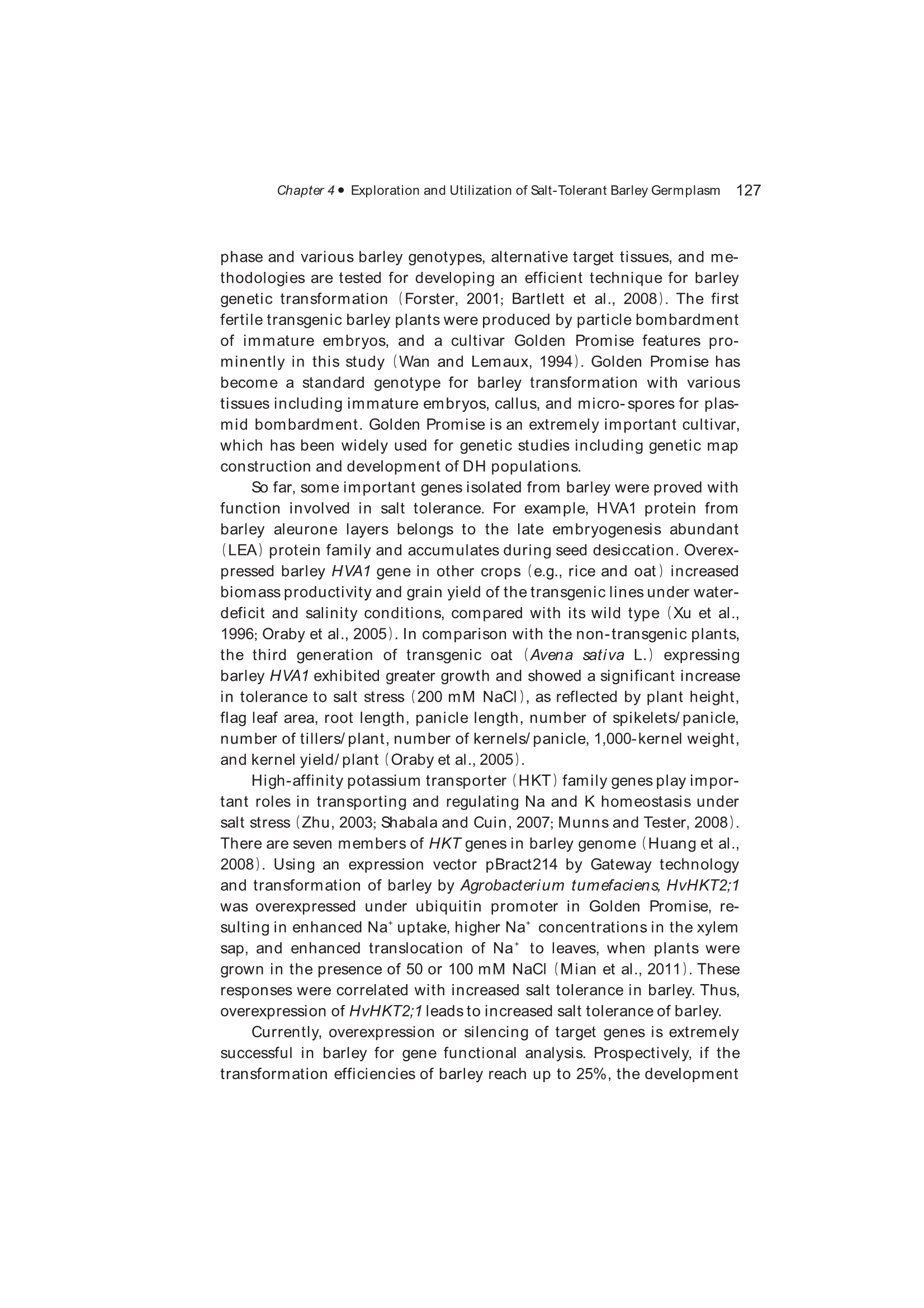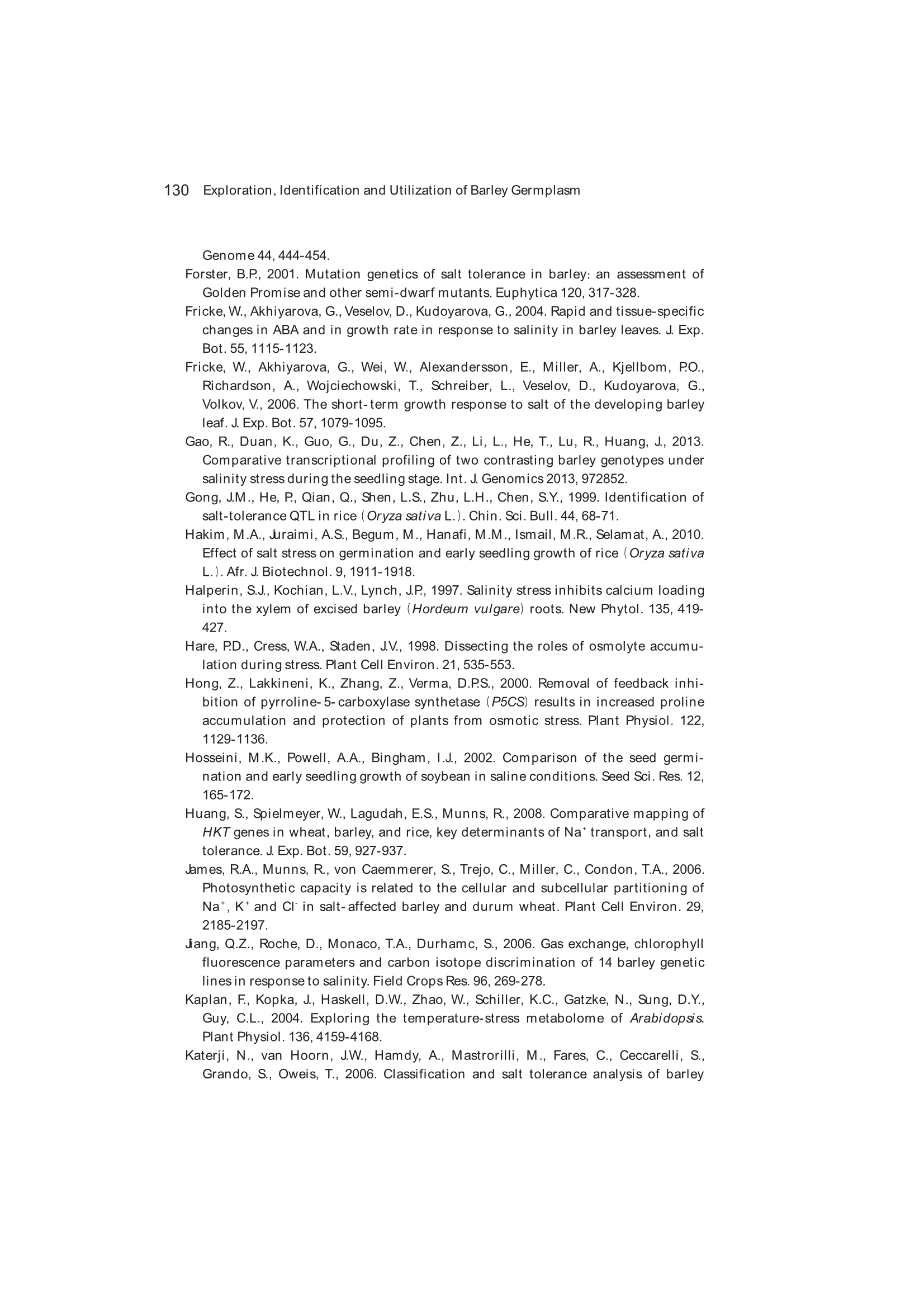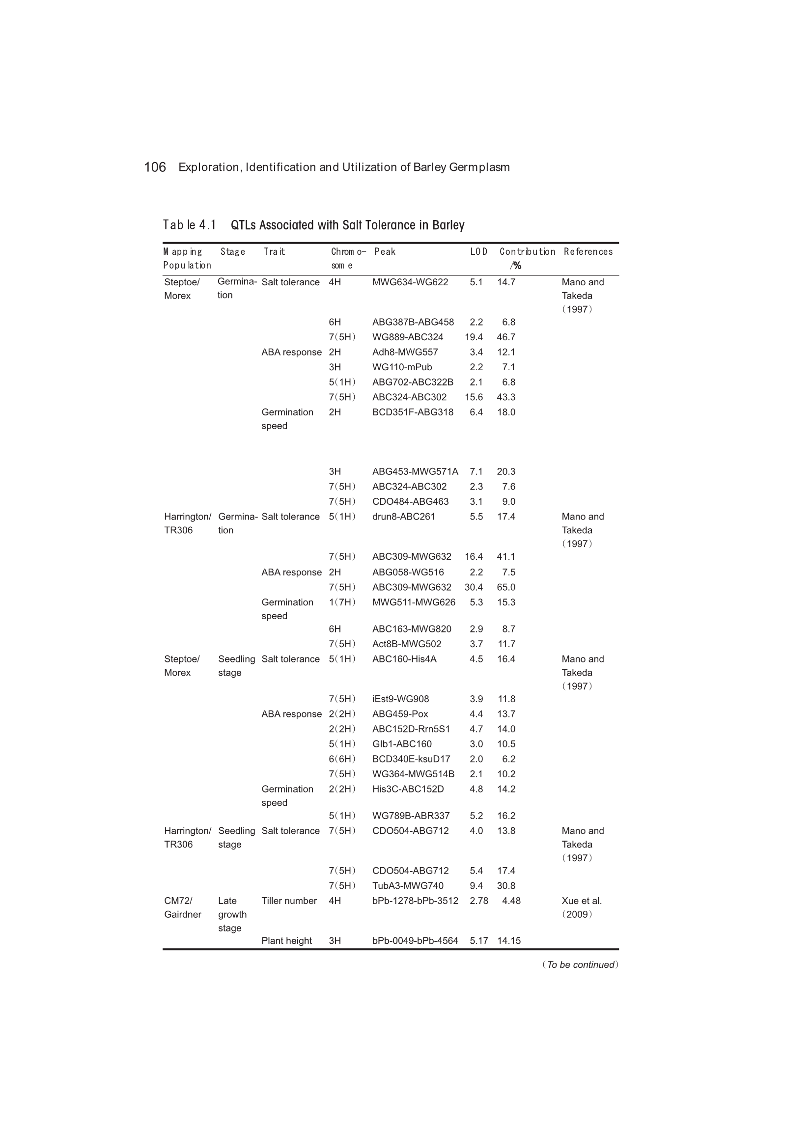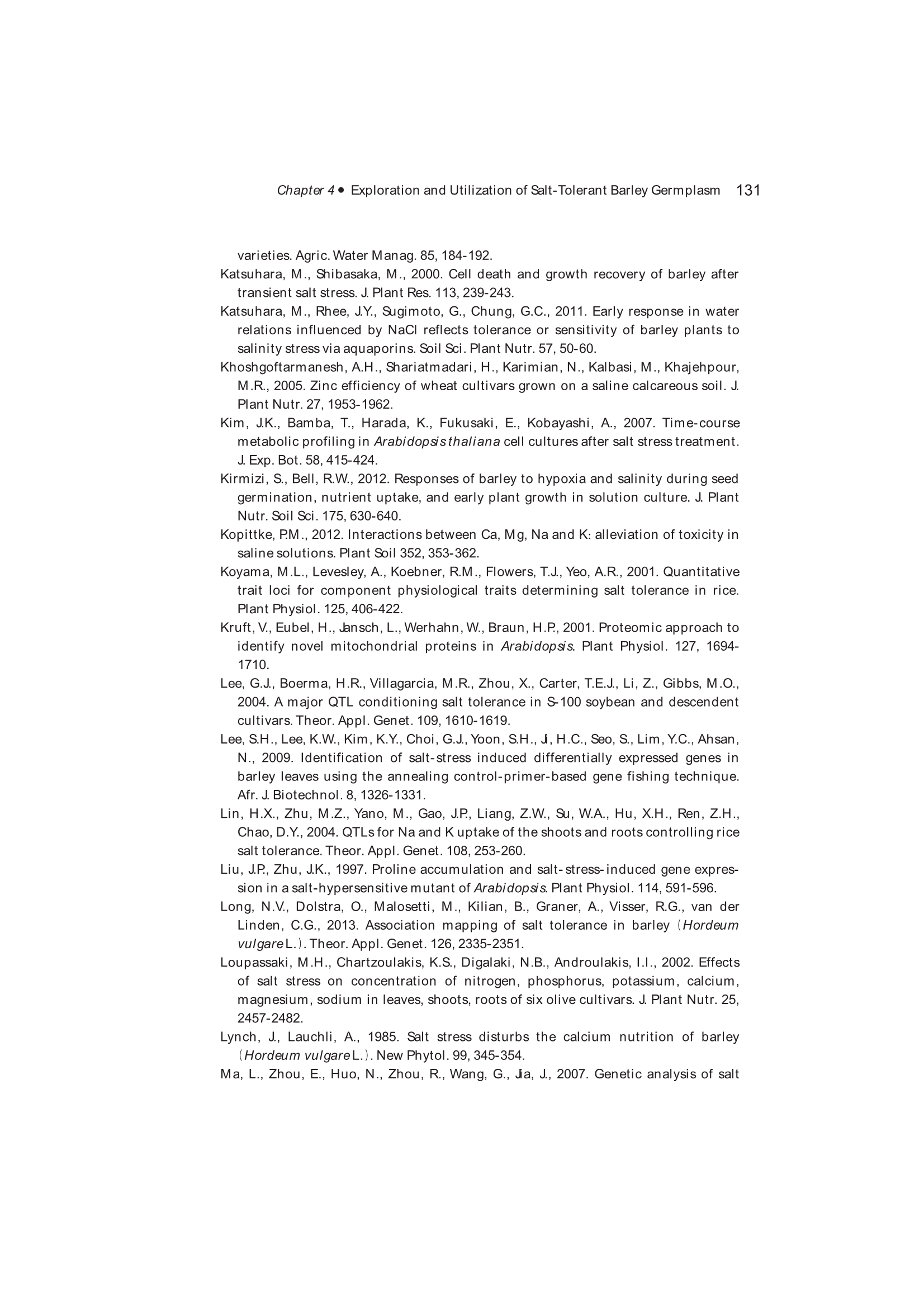 Exploration, Identification and Utilization of Barley Germplasm(《大麦种质资源创新与利用》):第4章 Exploration and Utilization of Salt-Tolerant Barley Germplasm