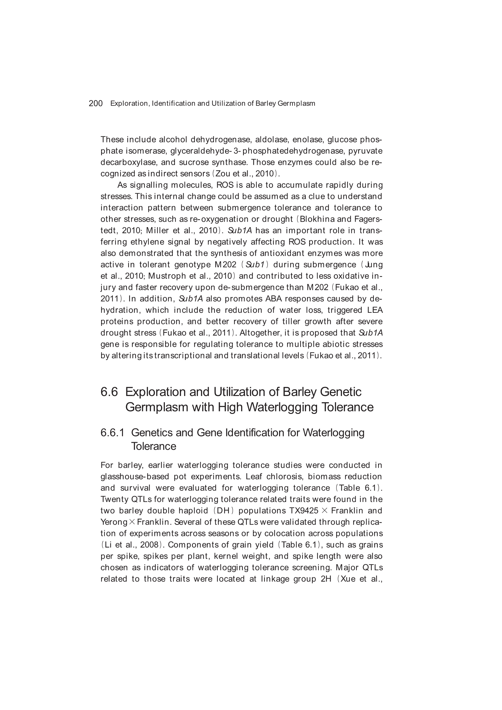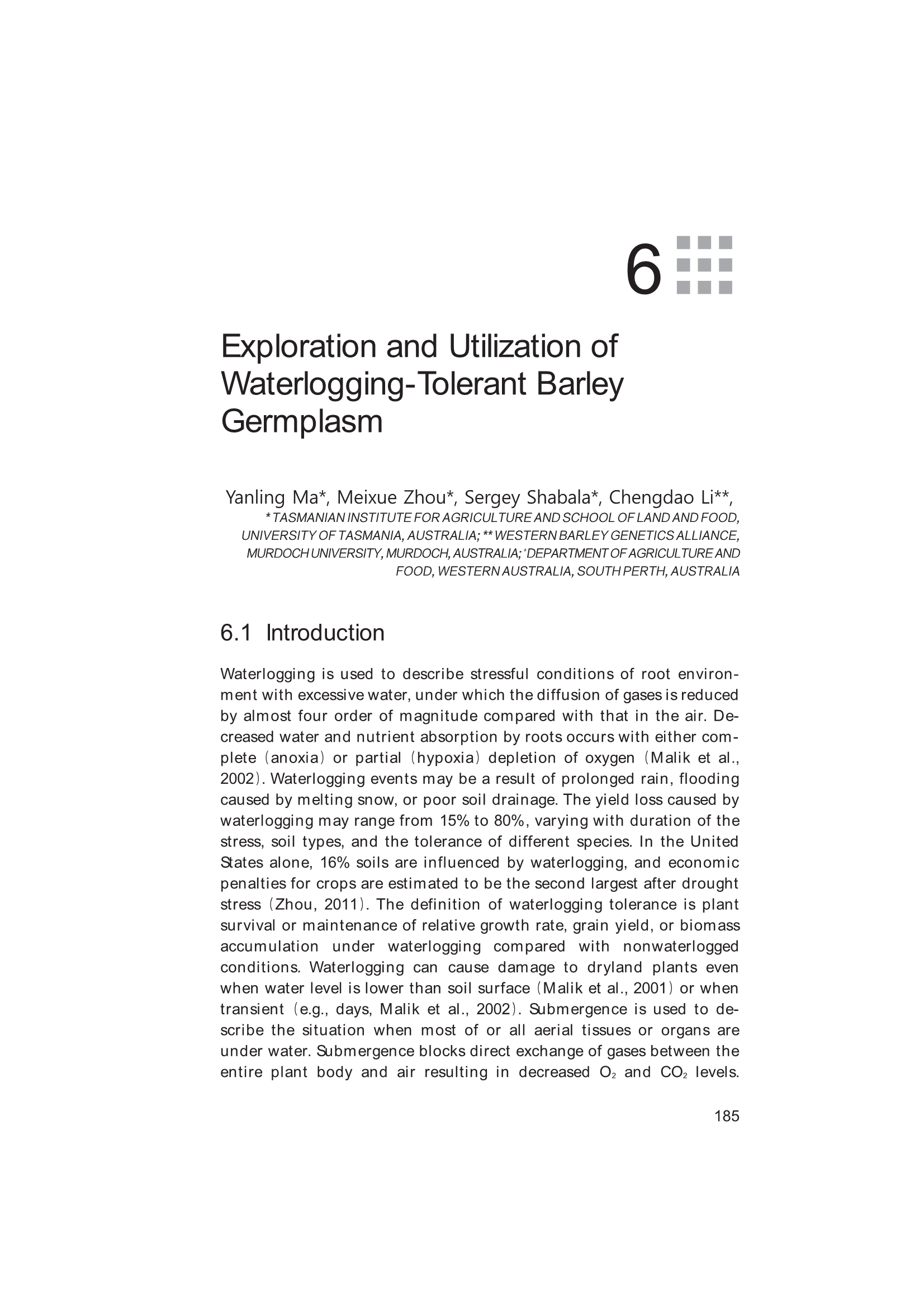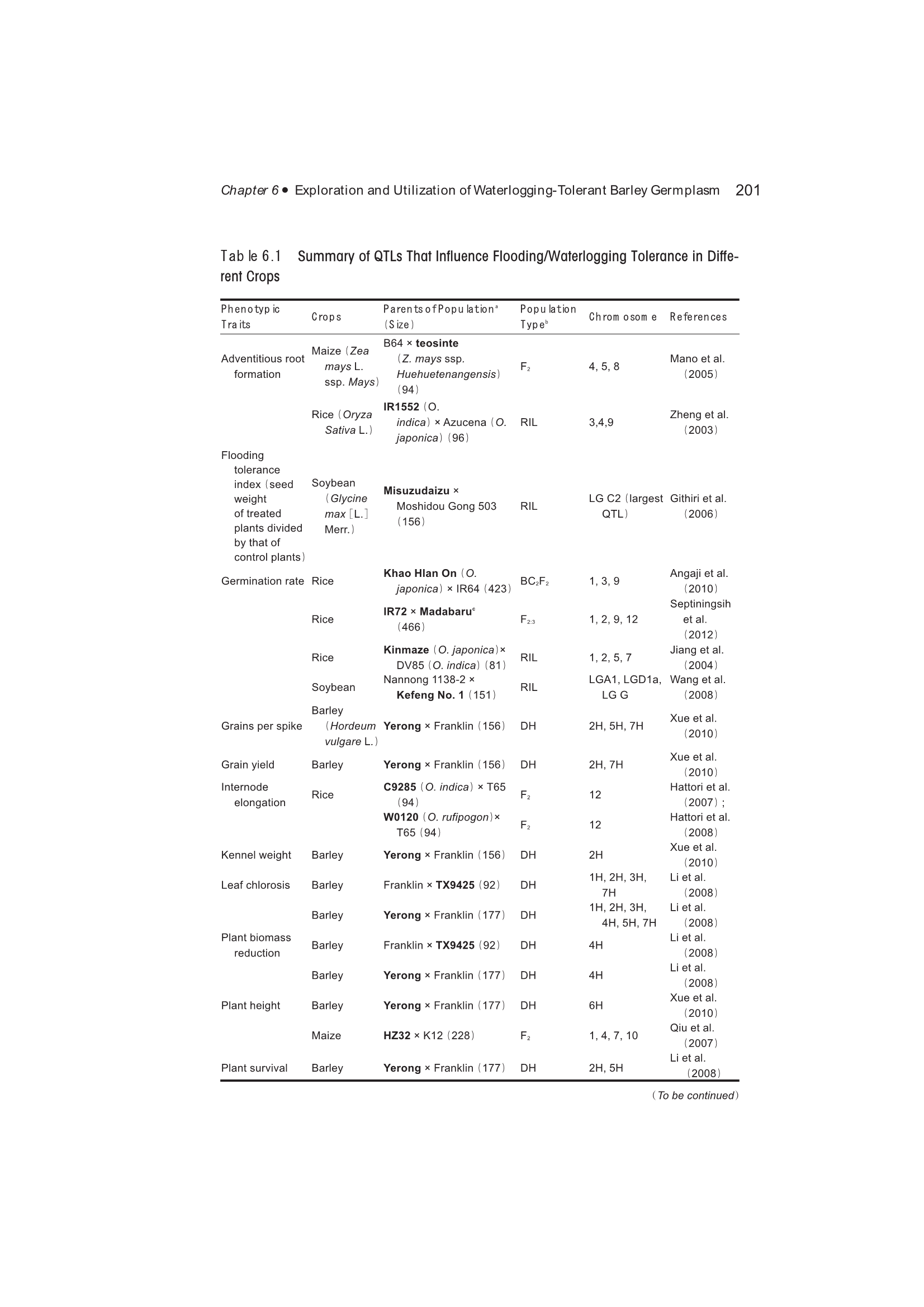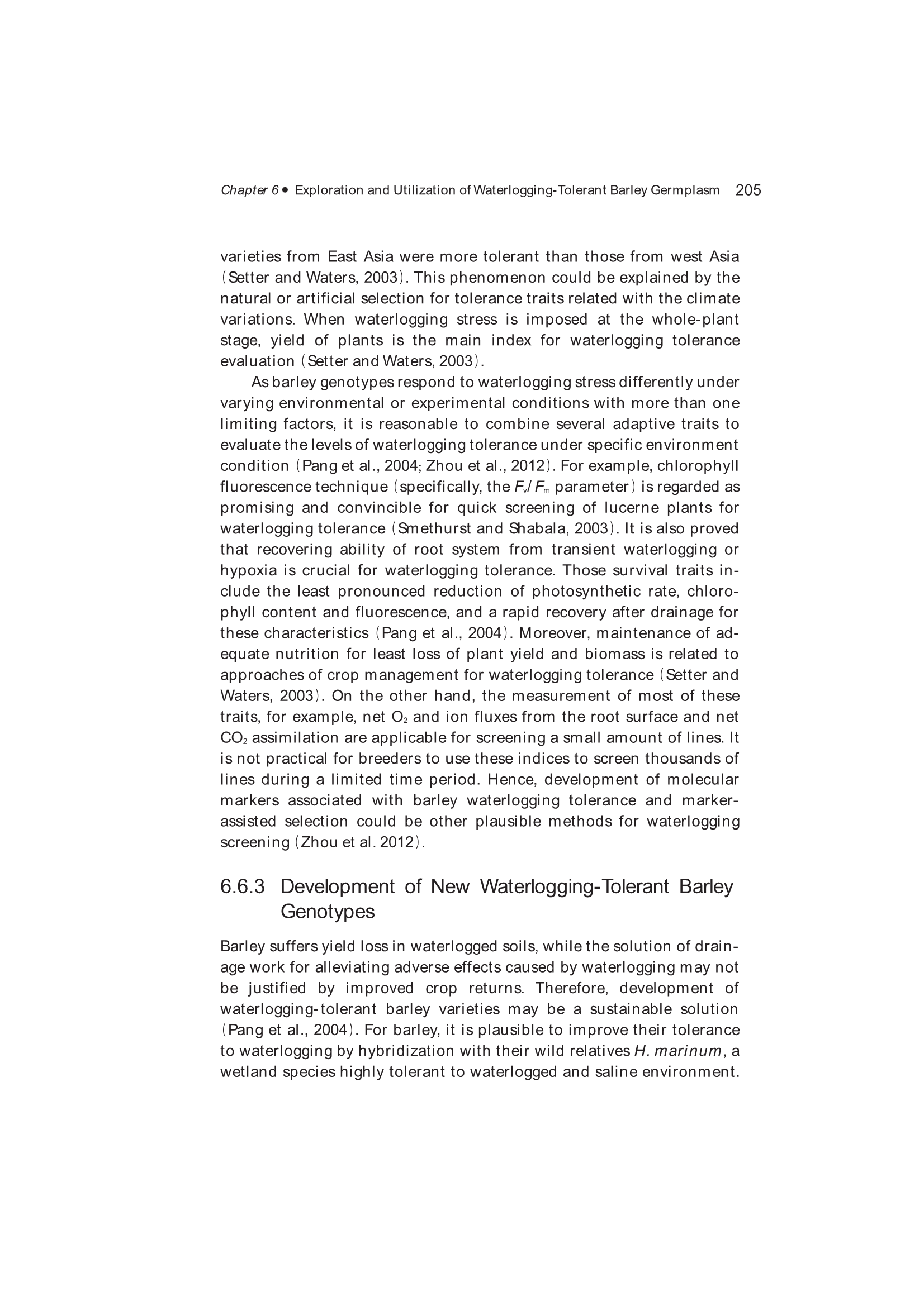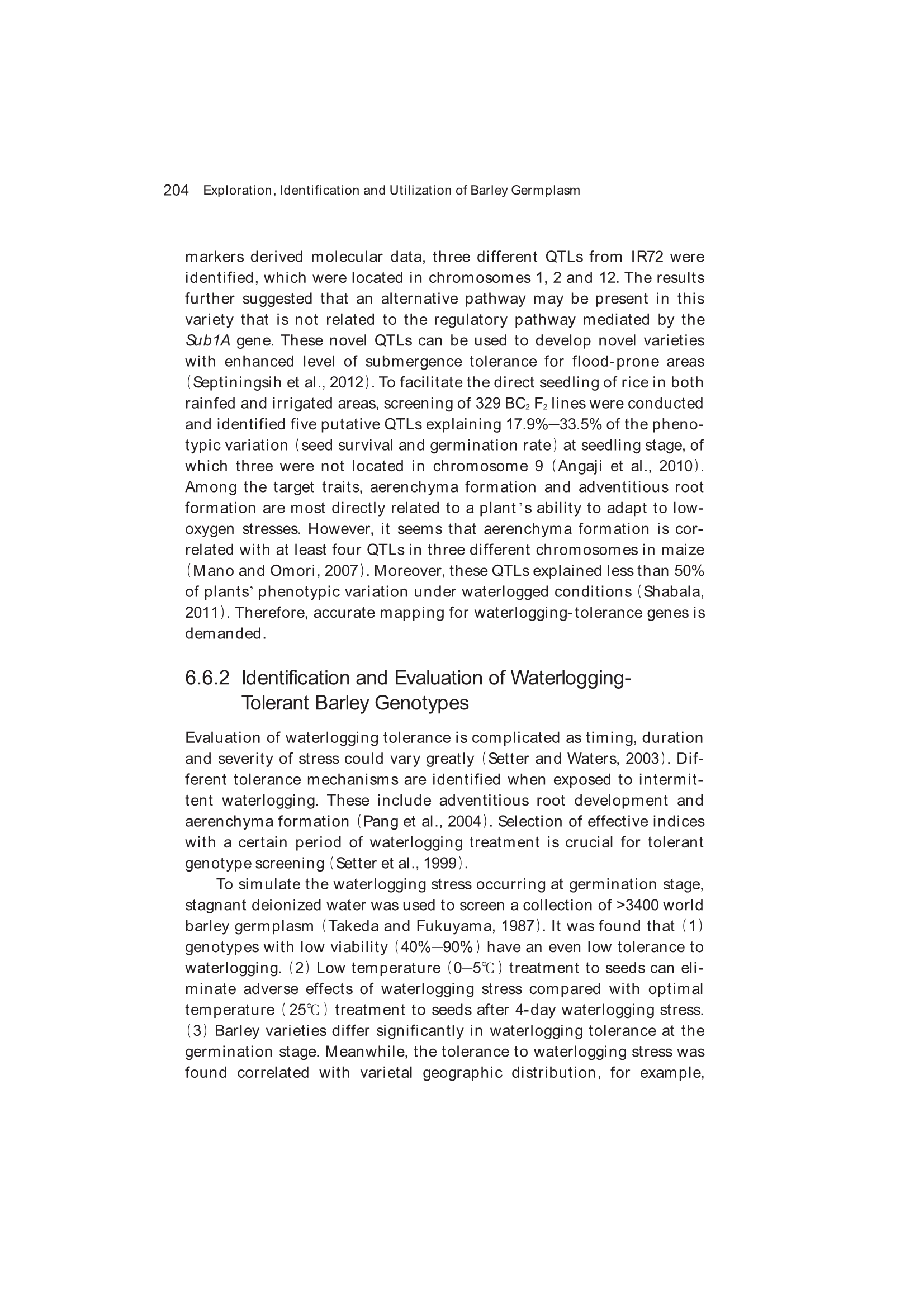Exploration, Identification and Utilization of Barley Germplasm(《大麦种质资源创新与利用》):第6章 Exploration and Utilization of Waterlogging-Tolerant Barley Germplasm