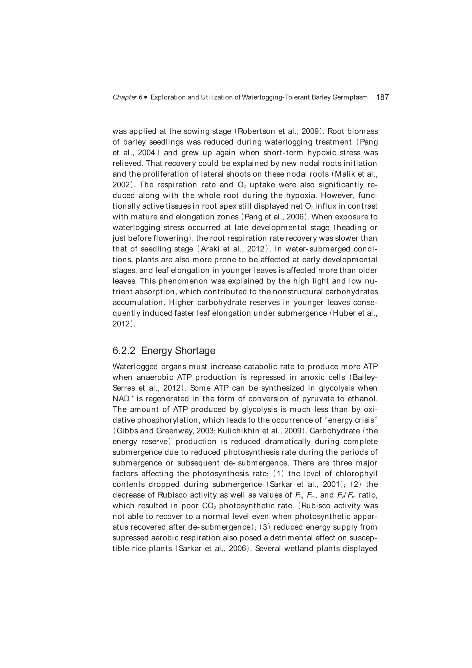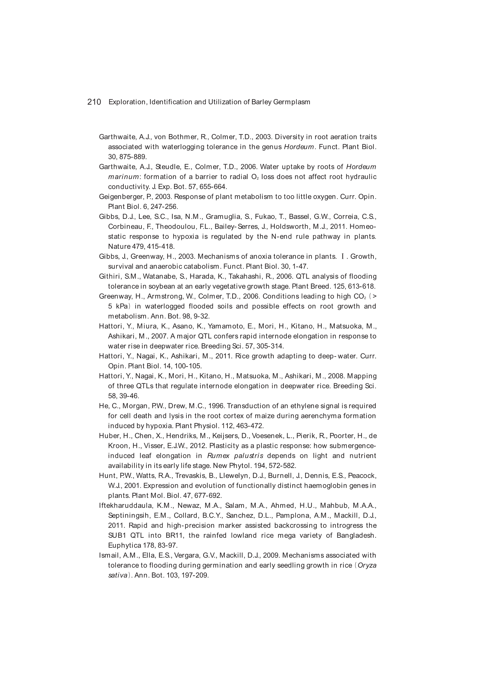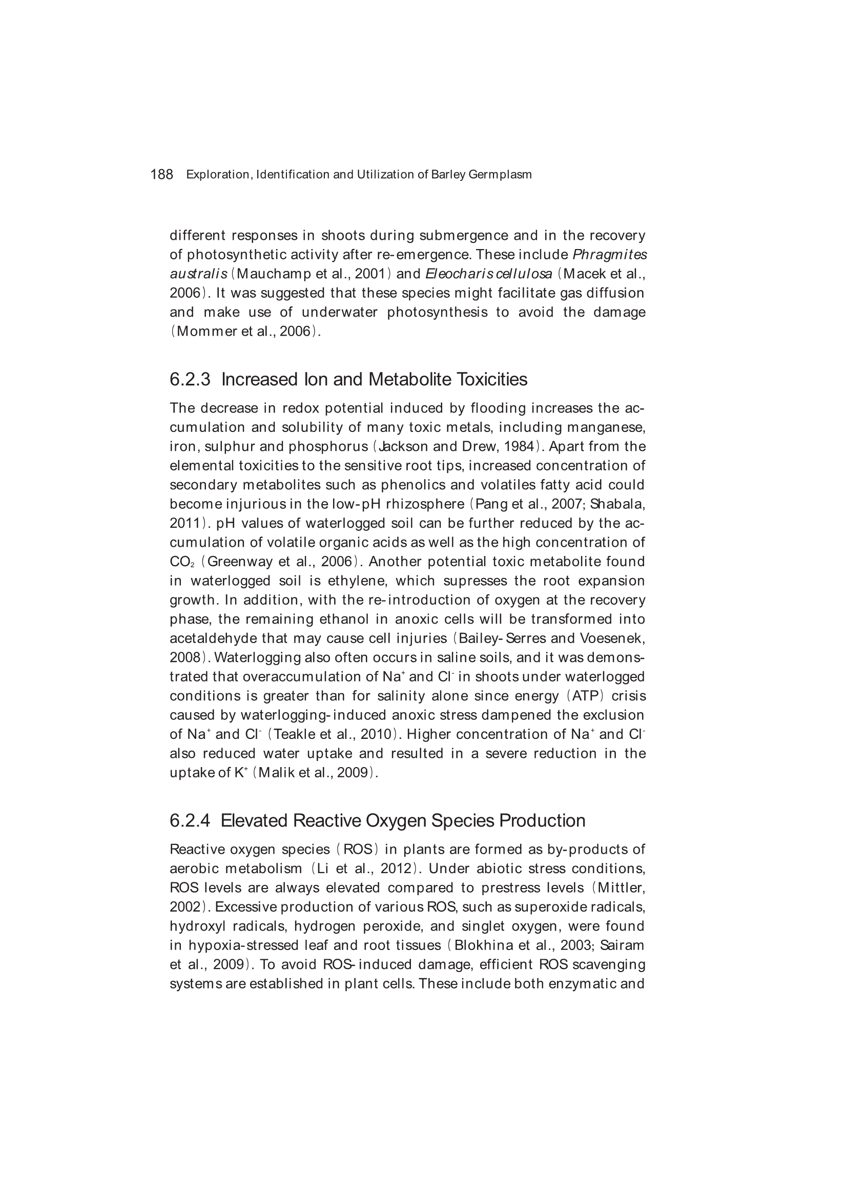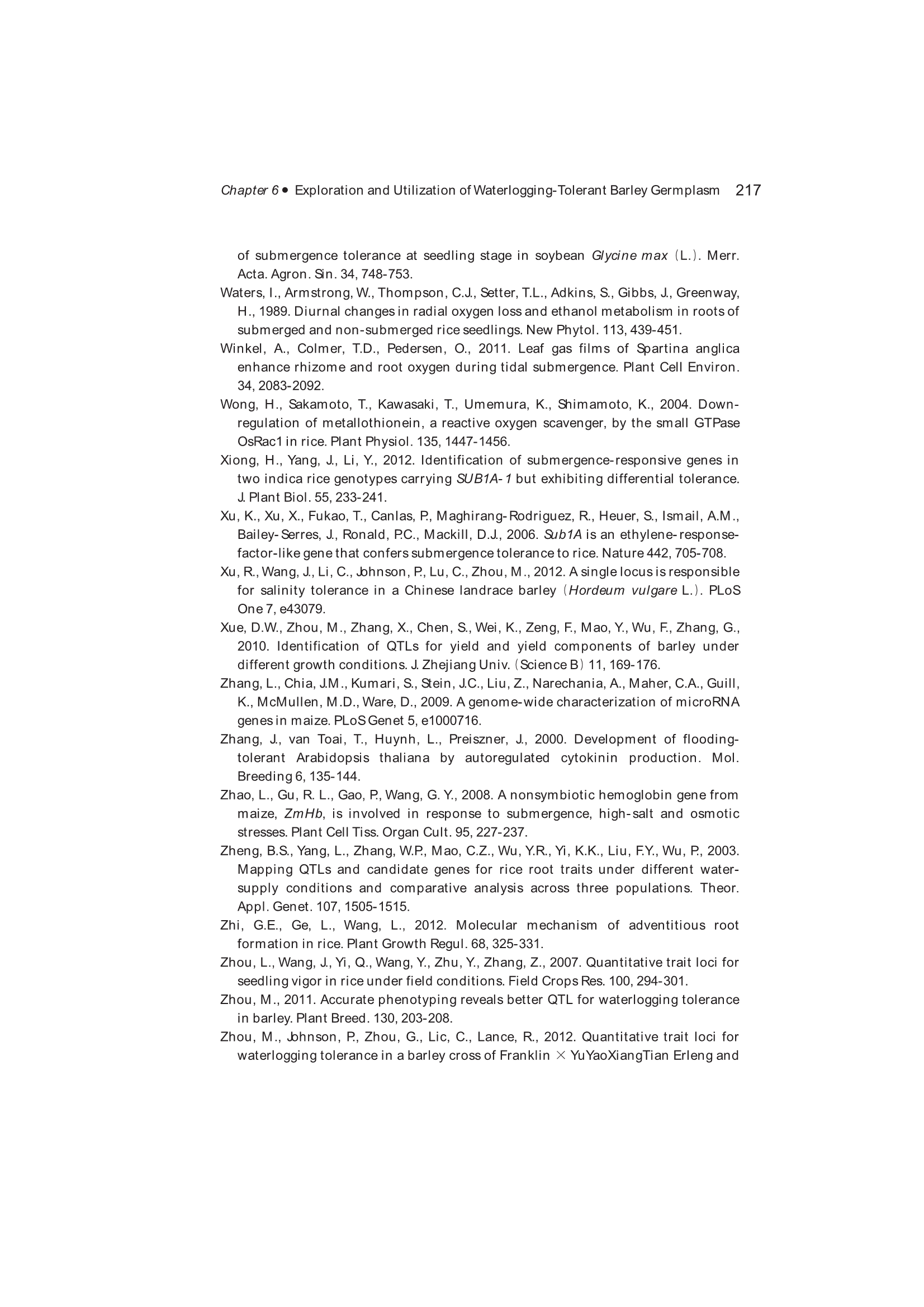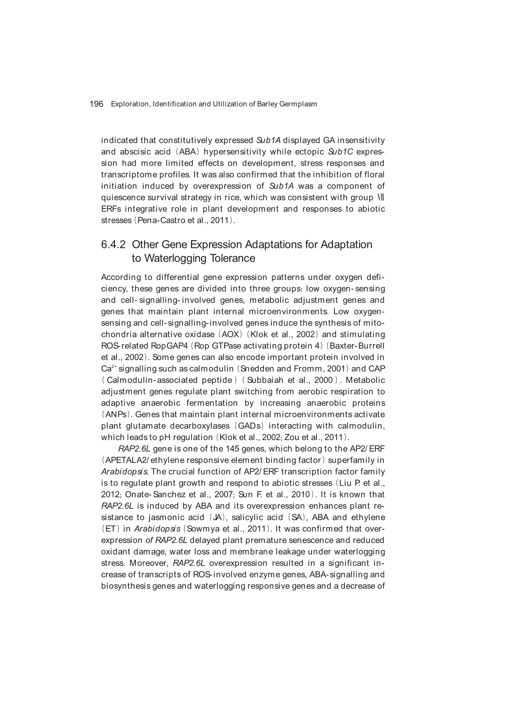 Exploration, Identification and Utilization of Barley Germplasm(《大麦种质资源创新与利用》):第6章 Exploration and Utilization of Waterlogging-Tolerant Barley Germplasm