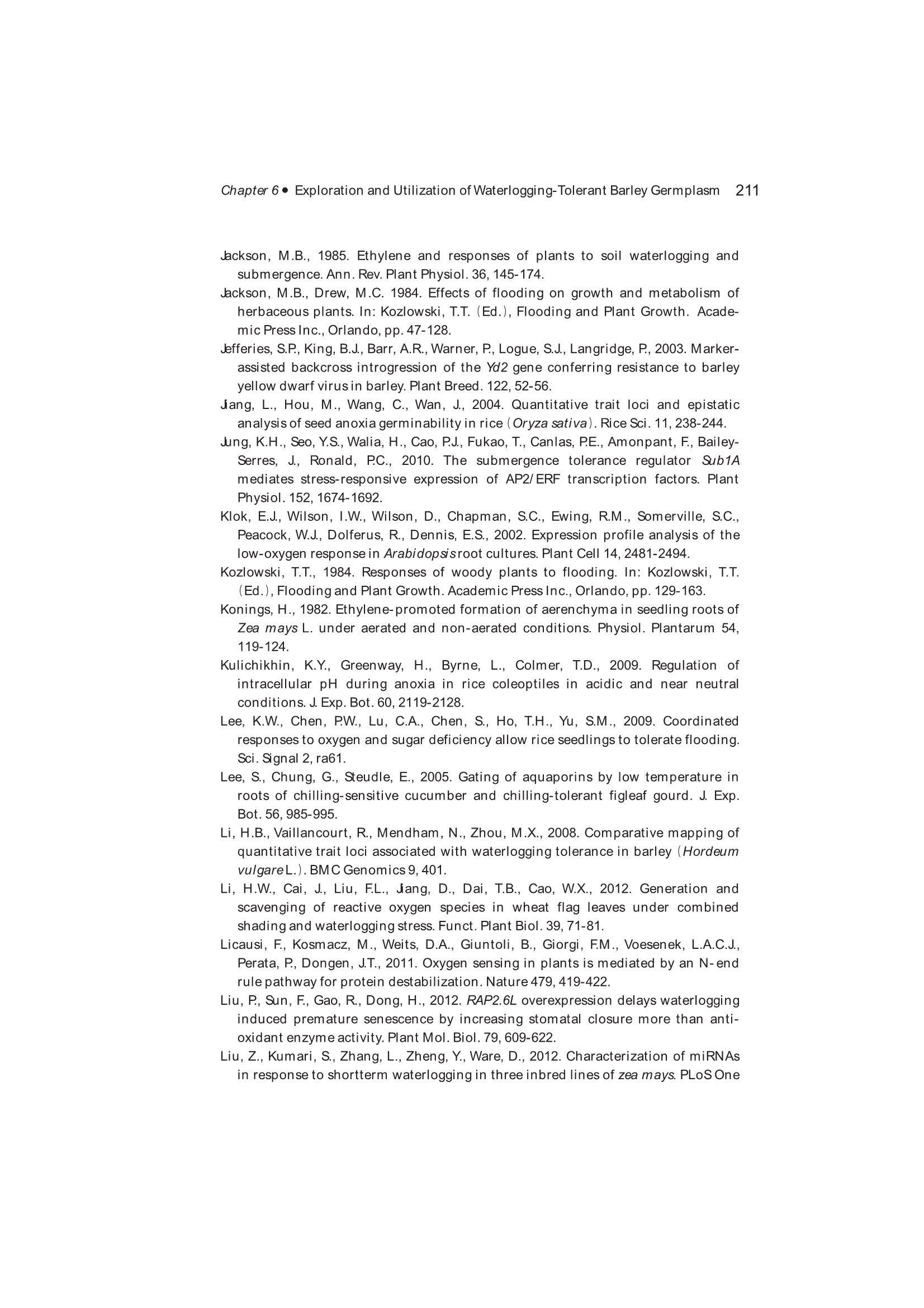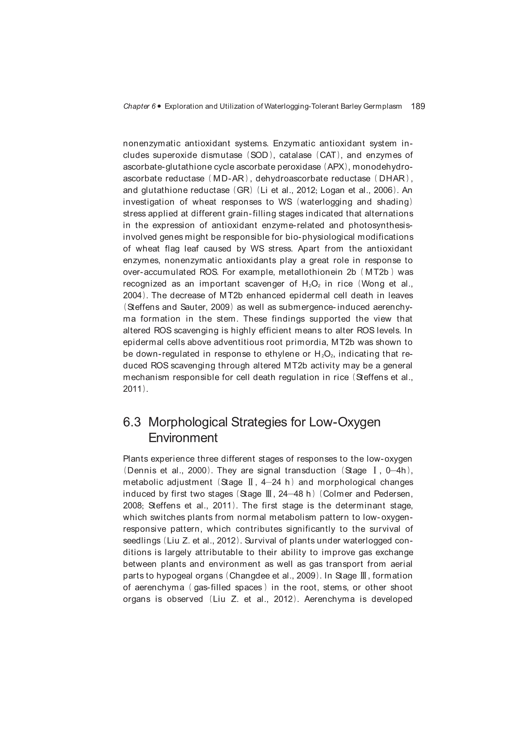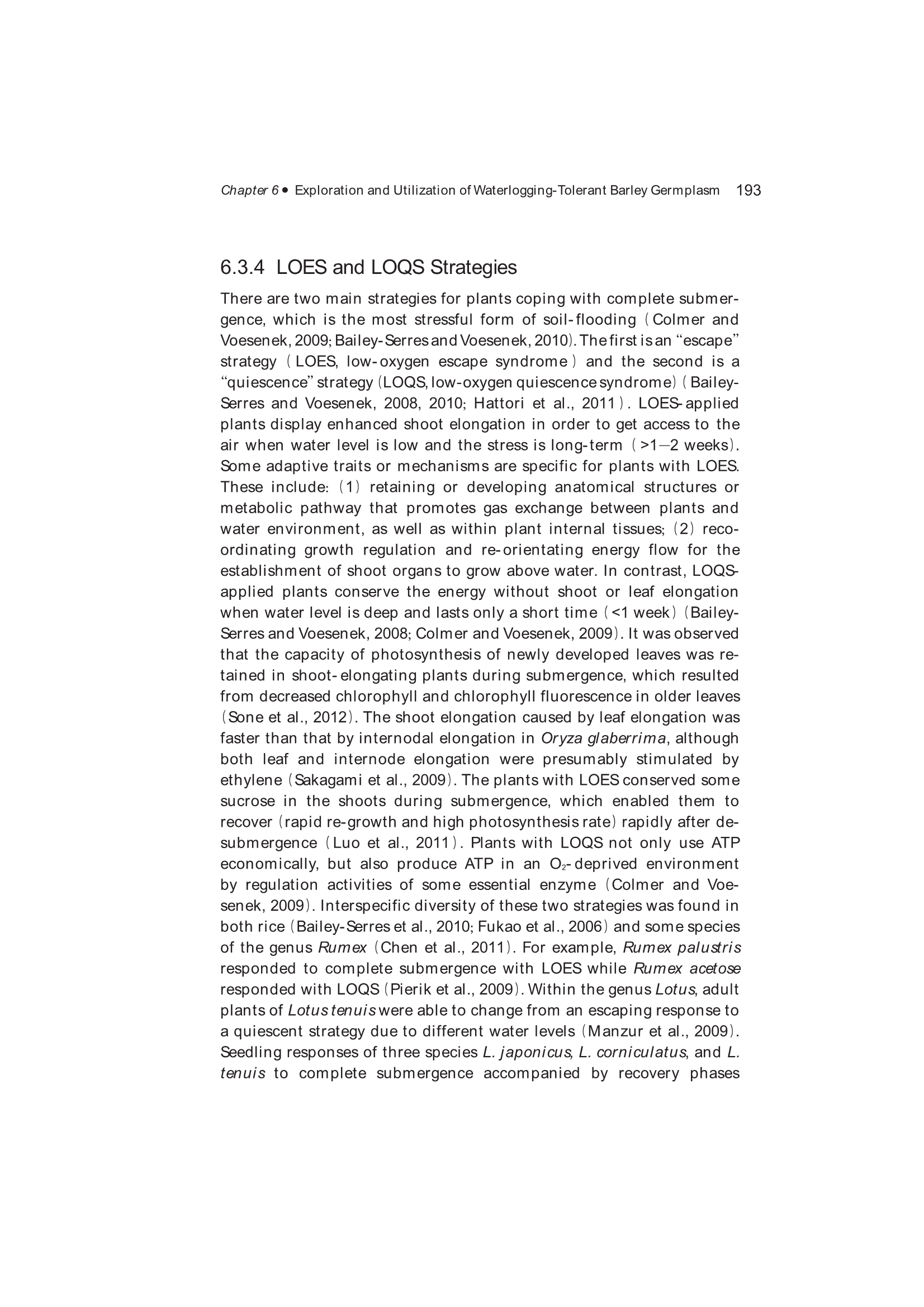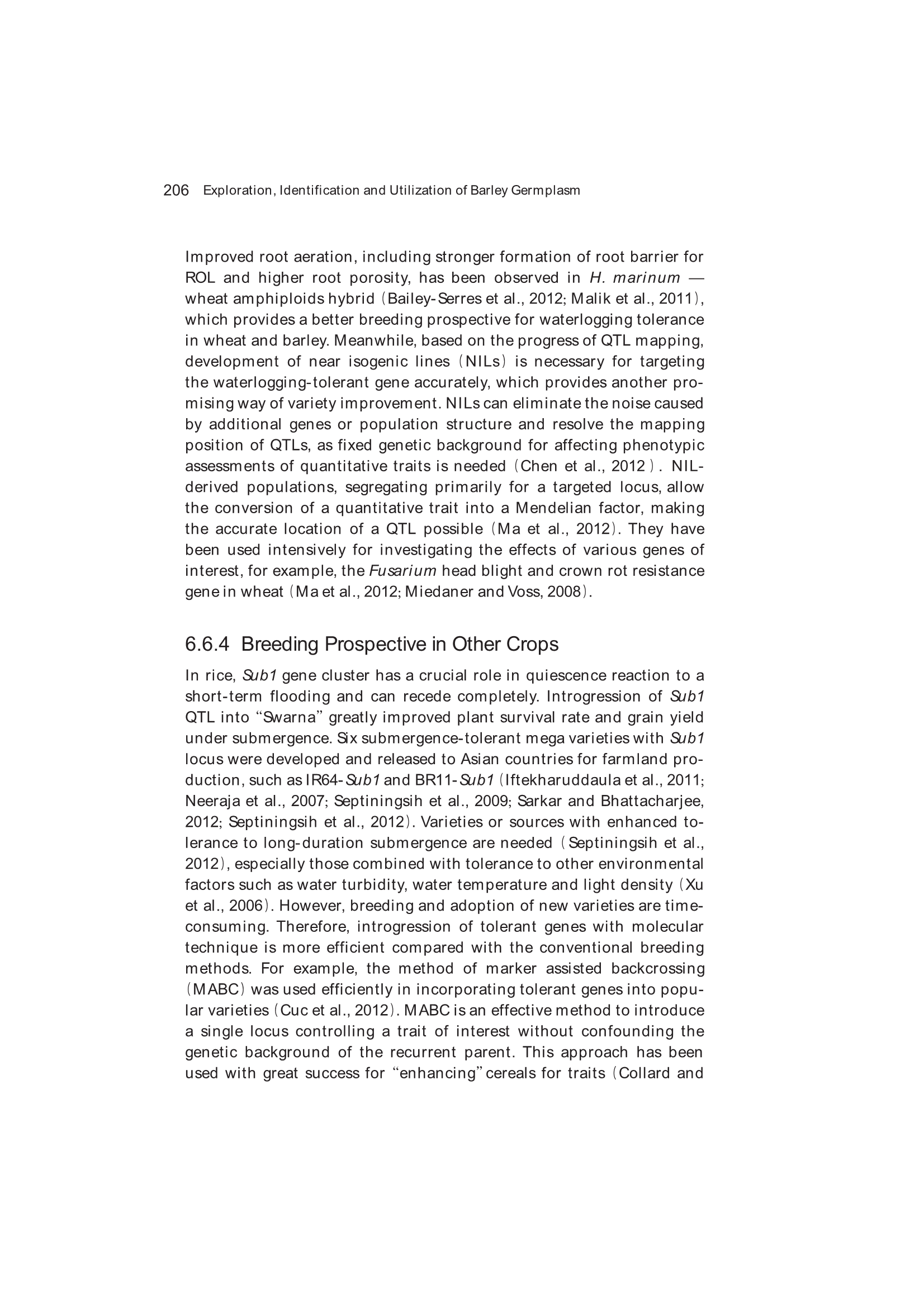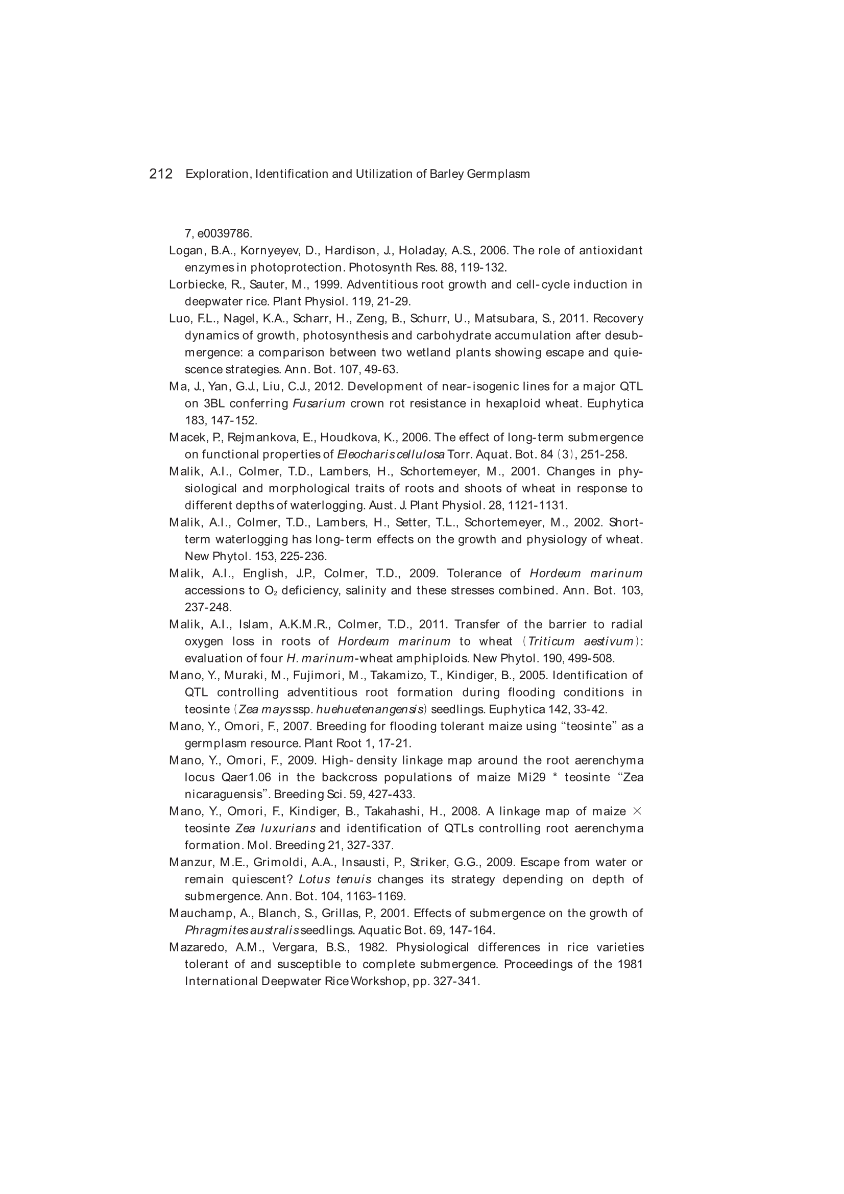 Exploration, Identification and Utilization of Barley Germplasm(《大麦种质资源创新与利用》):第6章 Exploration and Utilization of Waterlogging-Tolerant Barley Germplasm