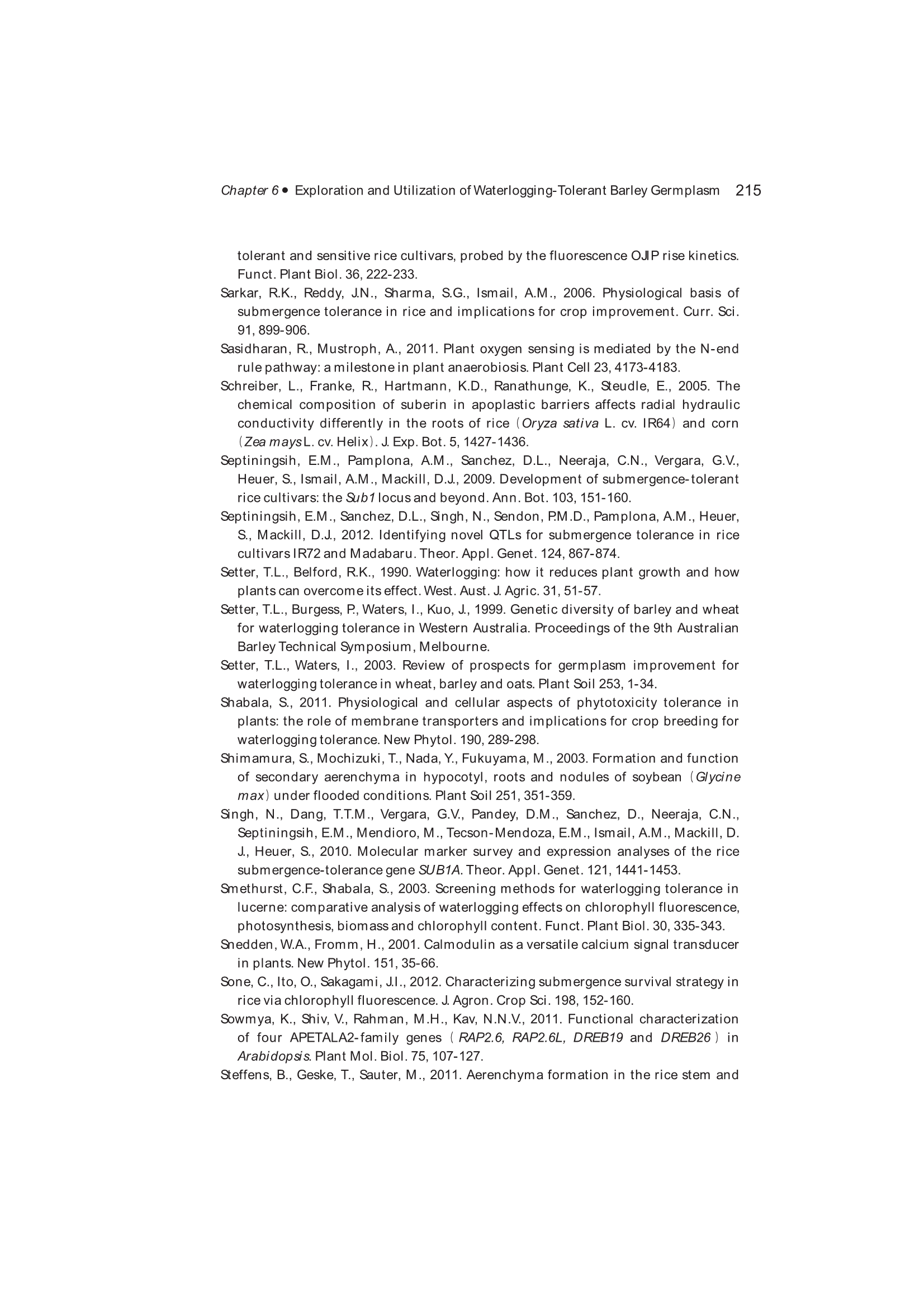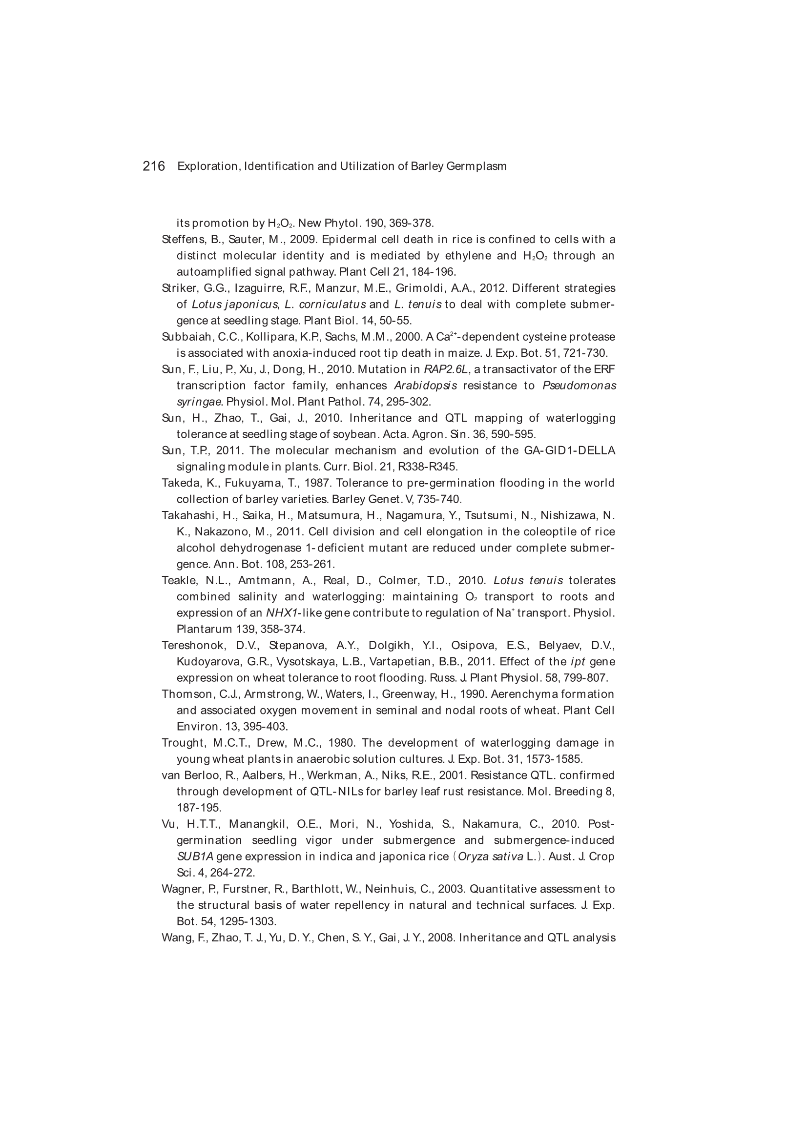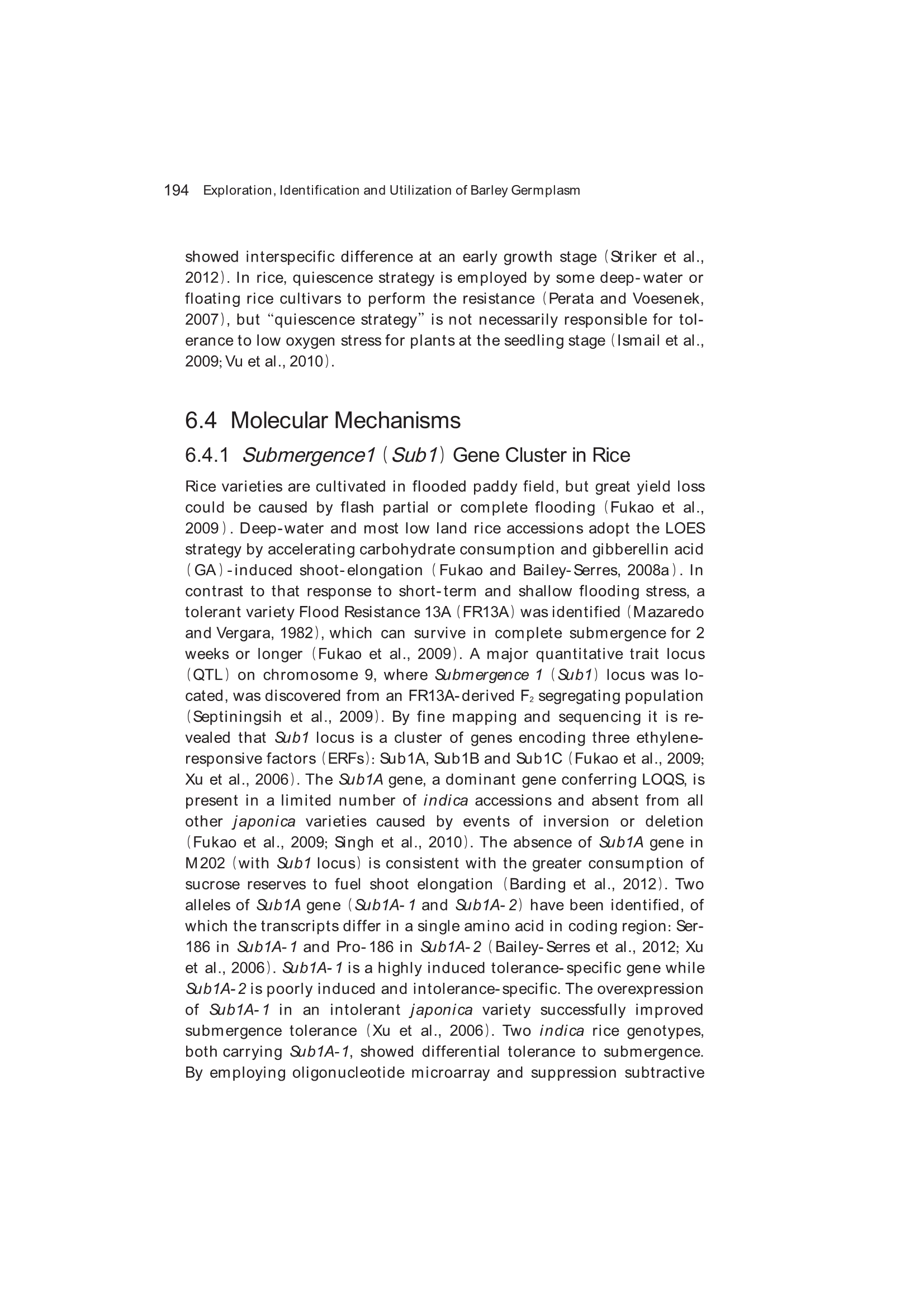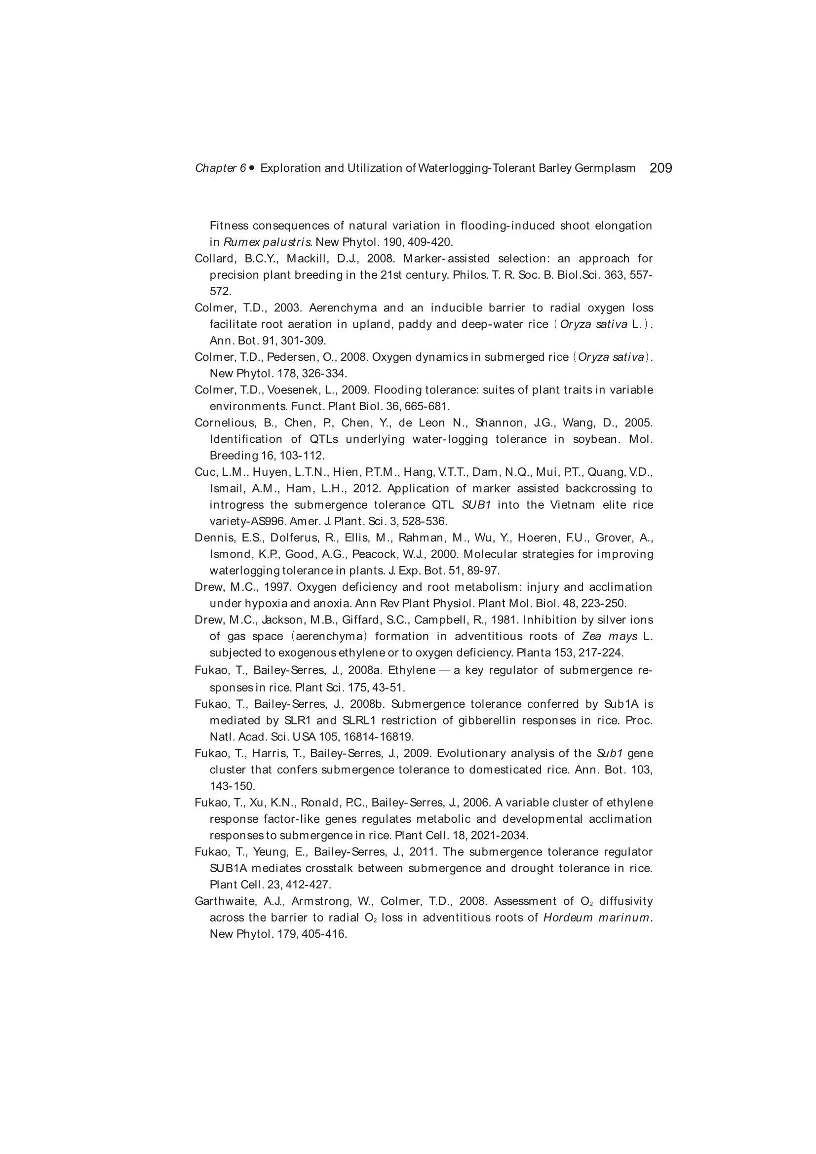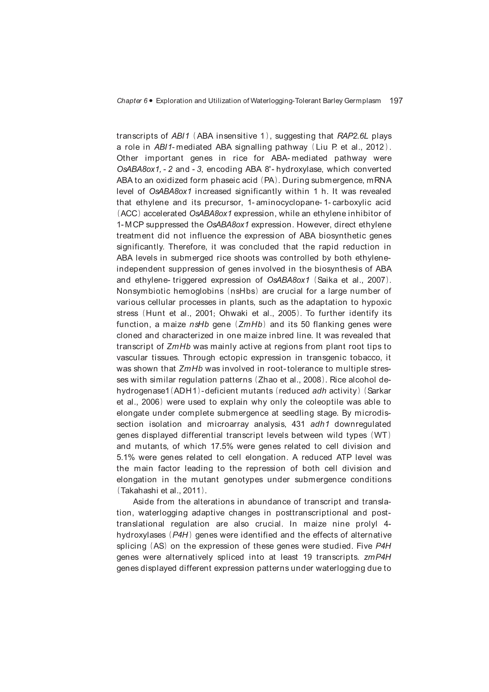 Exploration, Identification and Utilization of Barley Germplasm(《大麦种质资源创新与利用》):第6章 Exploration and Utilization of Waterlogging-Tolerant Barley Germplasm