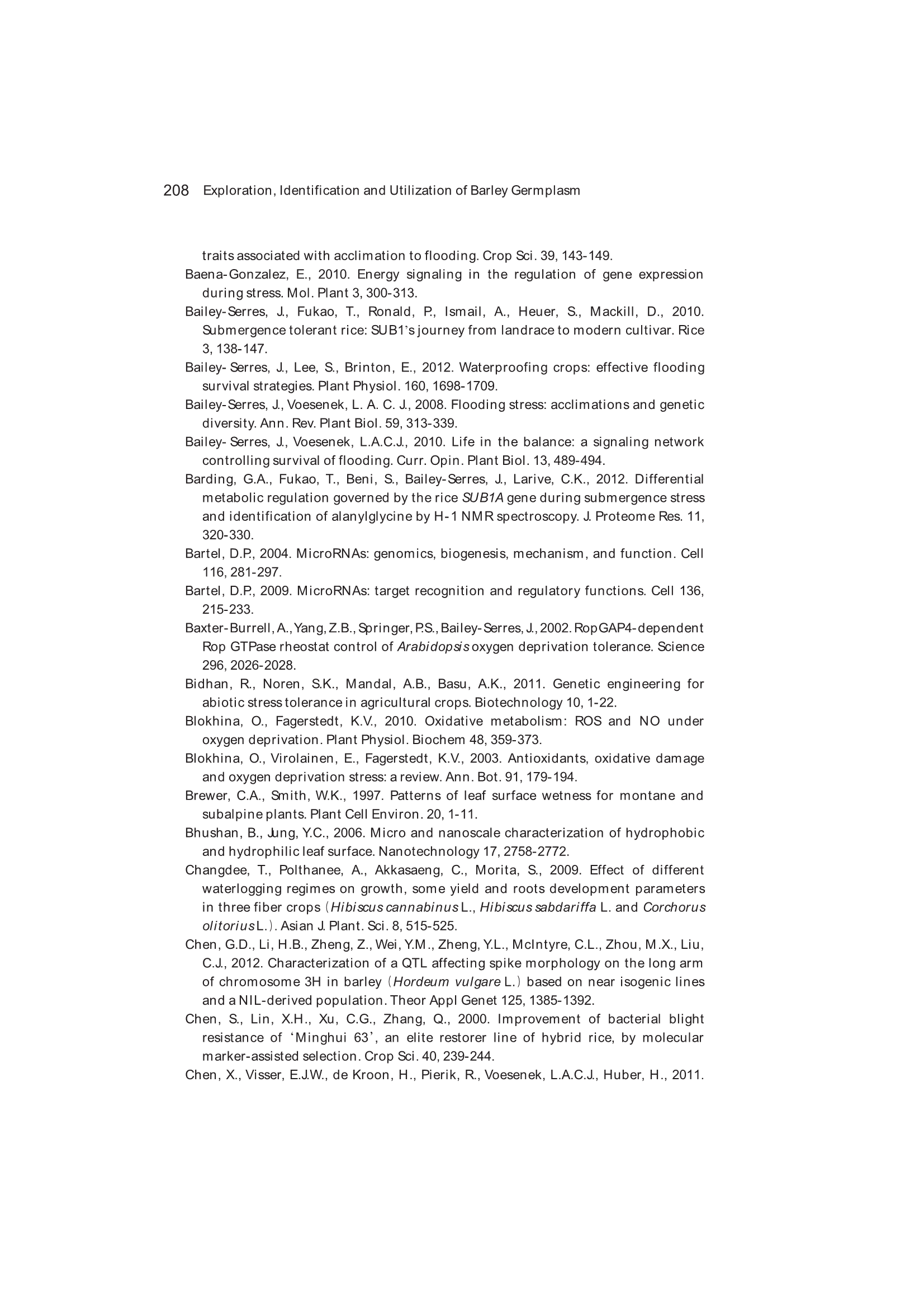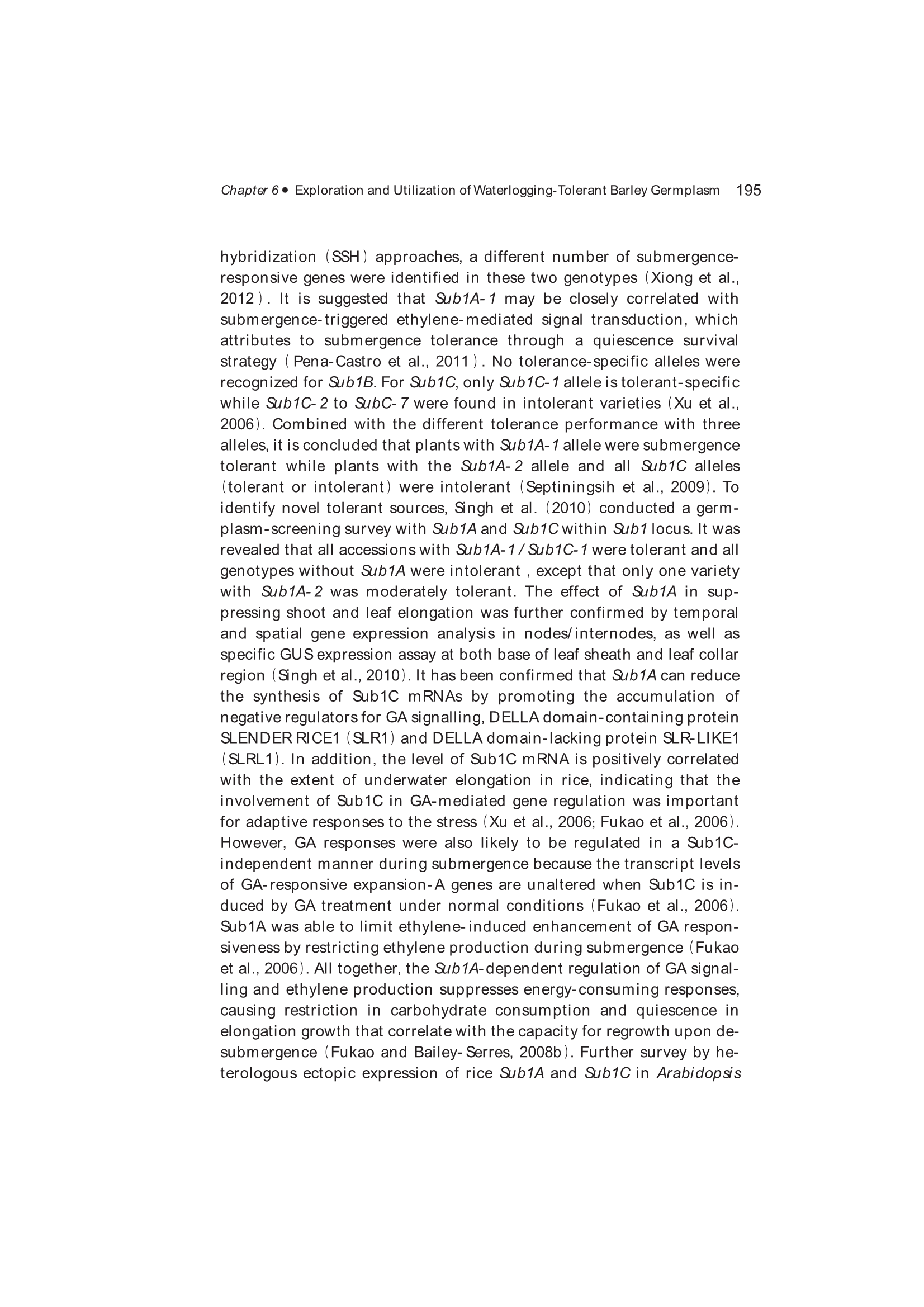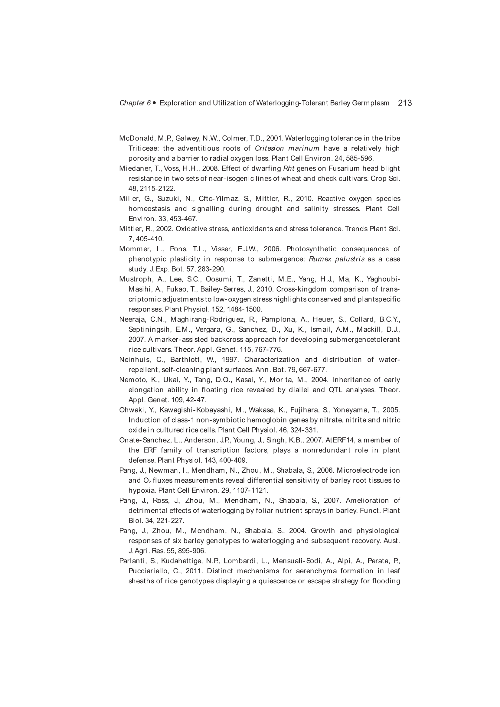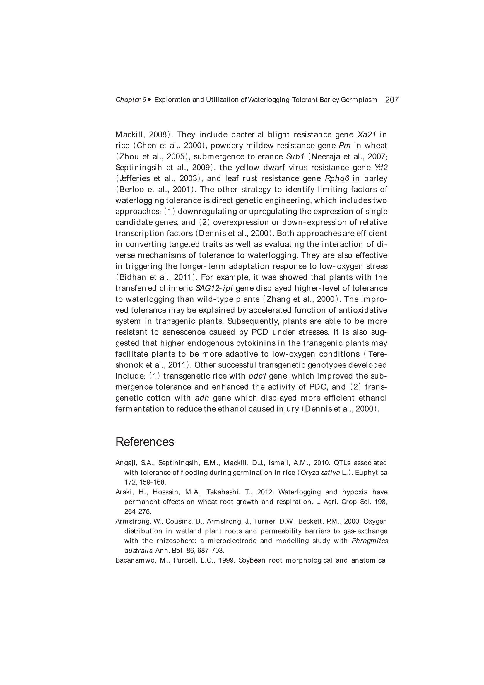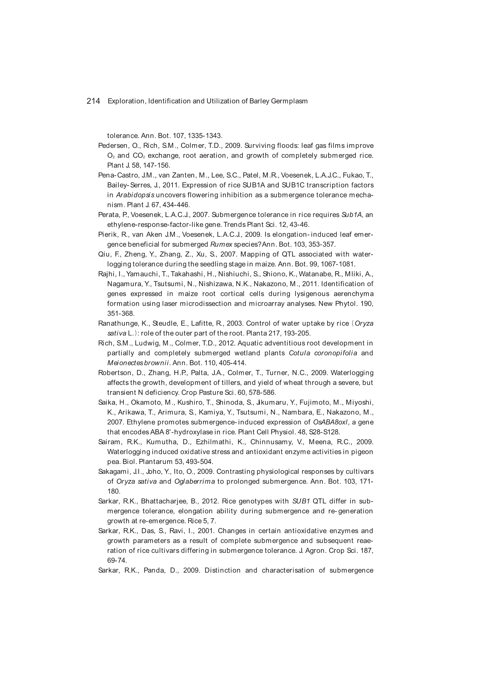 Exploration, Identification and Utilization of Barley Germplasm(《大麦种质资源创新与利用》):第6章 Exploration and Utilization of Waterlogging-Tolerant Barley Germplasm