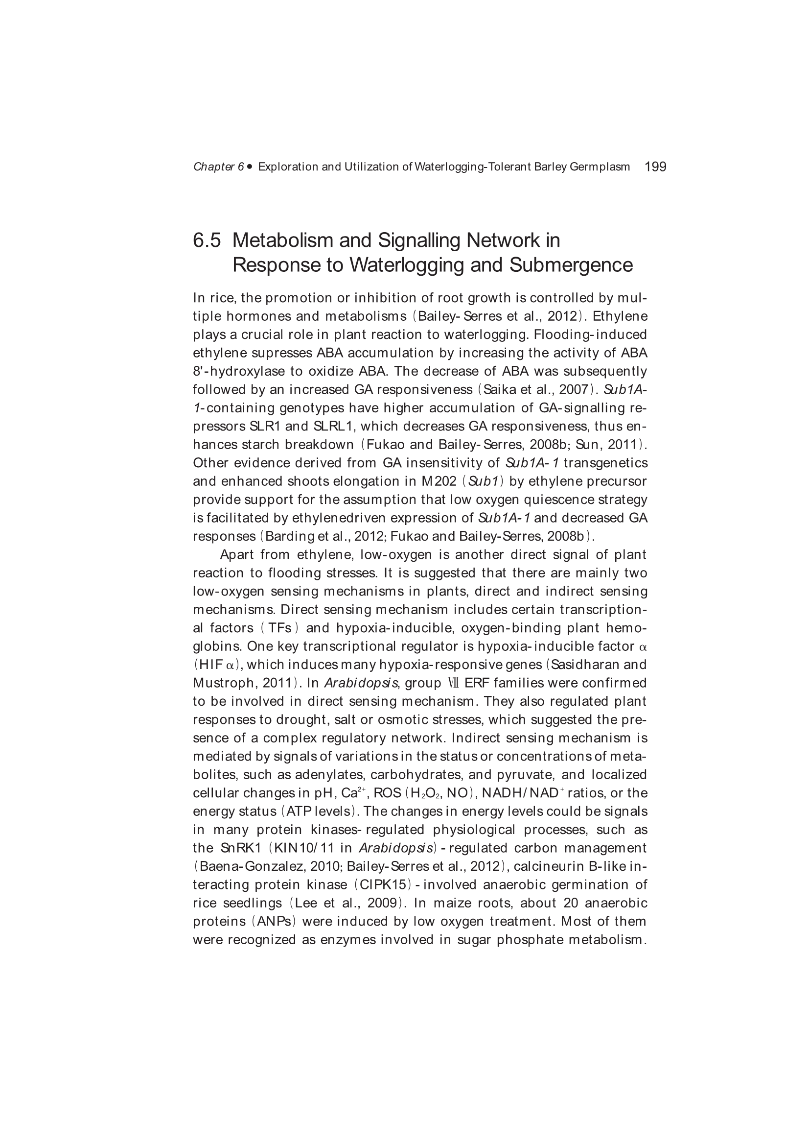 6.5 Metabolism and Signalling Network in Response to Waterlogging and Submergence