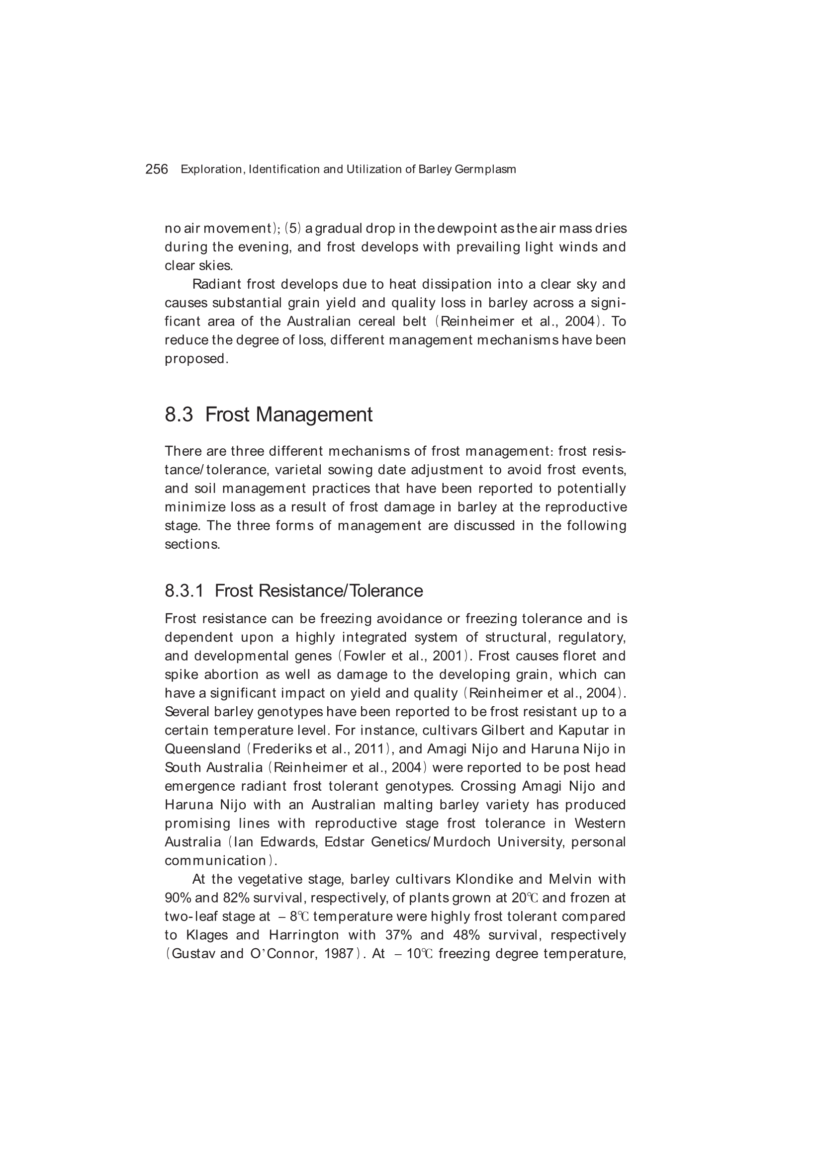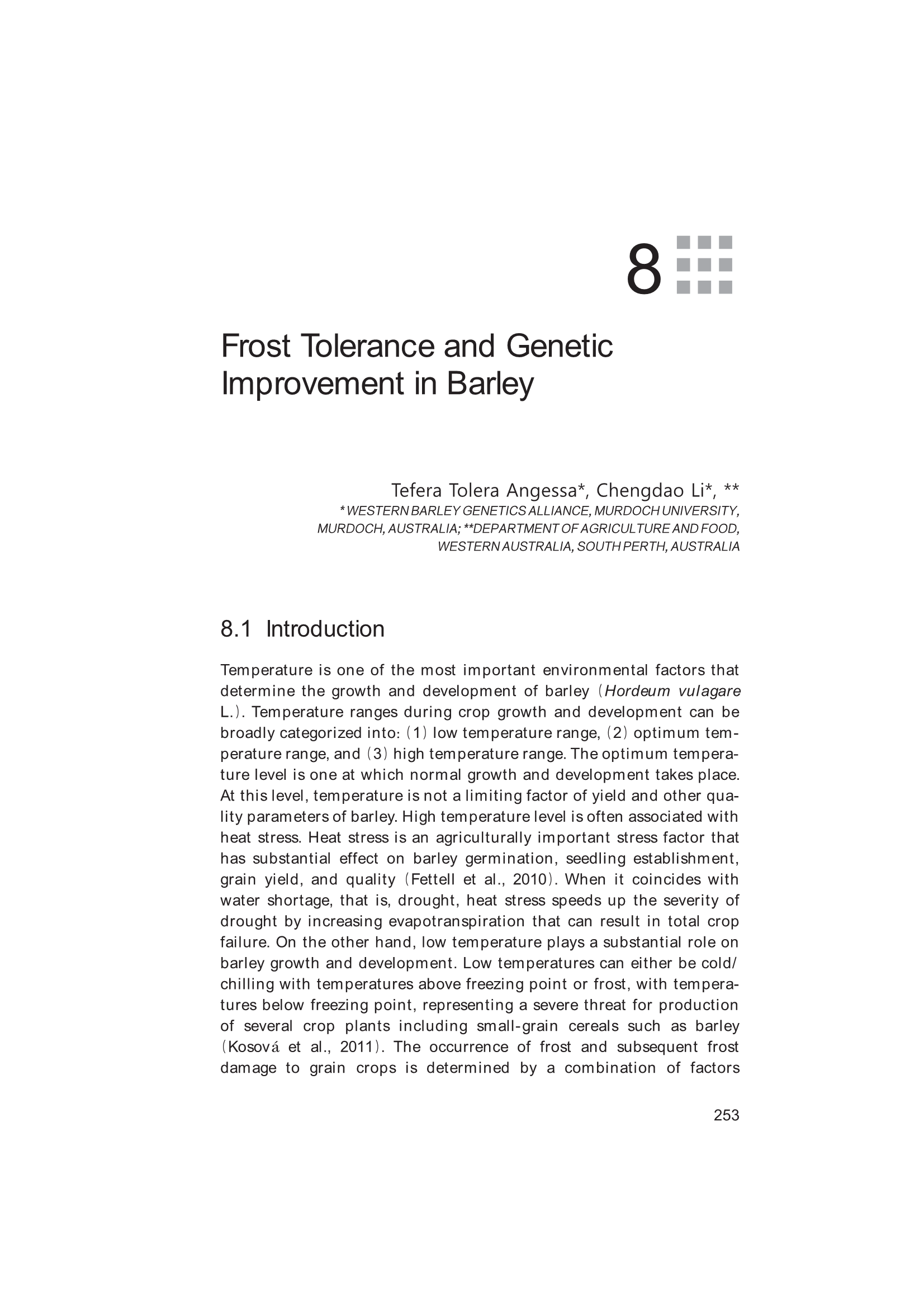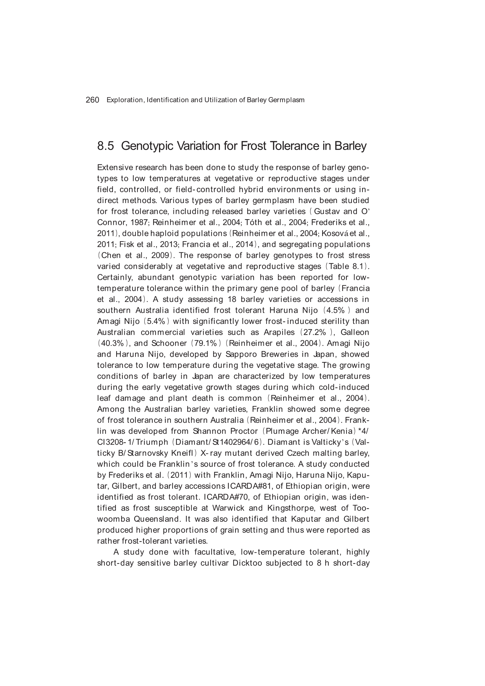 8.5 Genotypic Variation for Frost Tolerance in Barley
