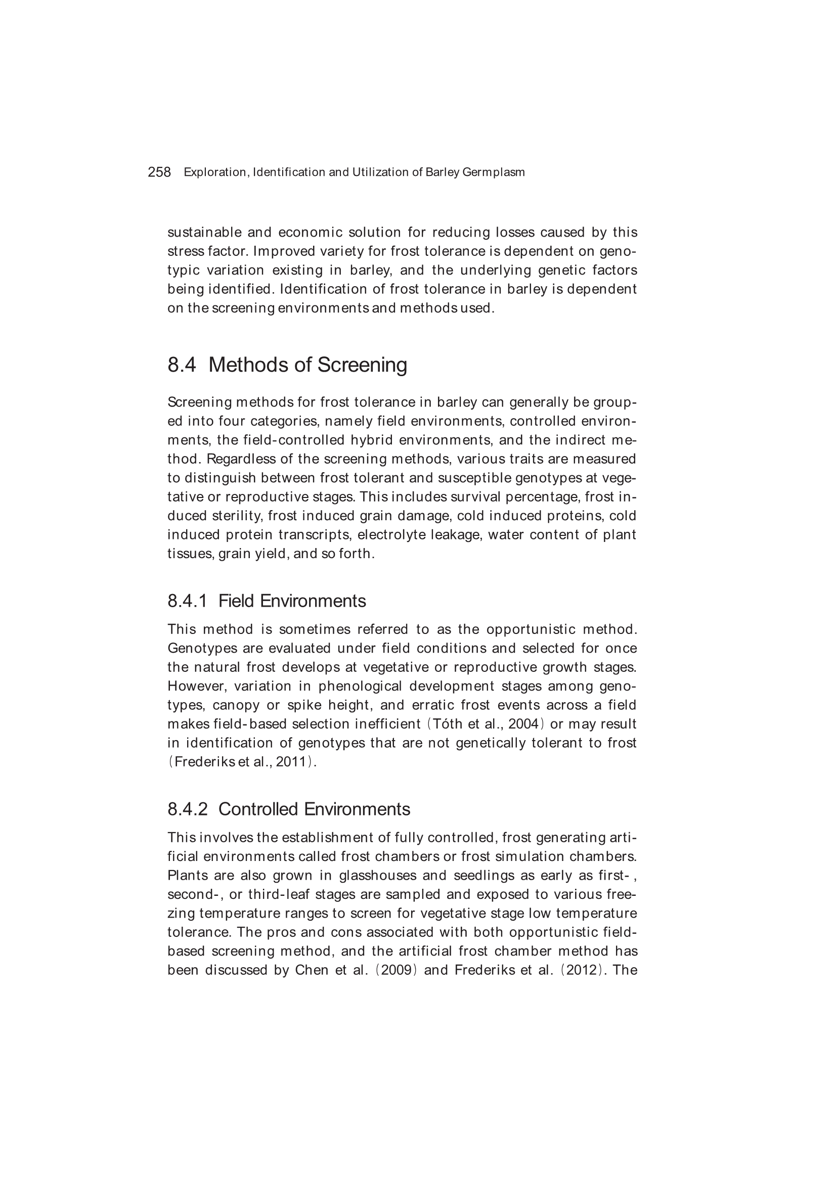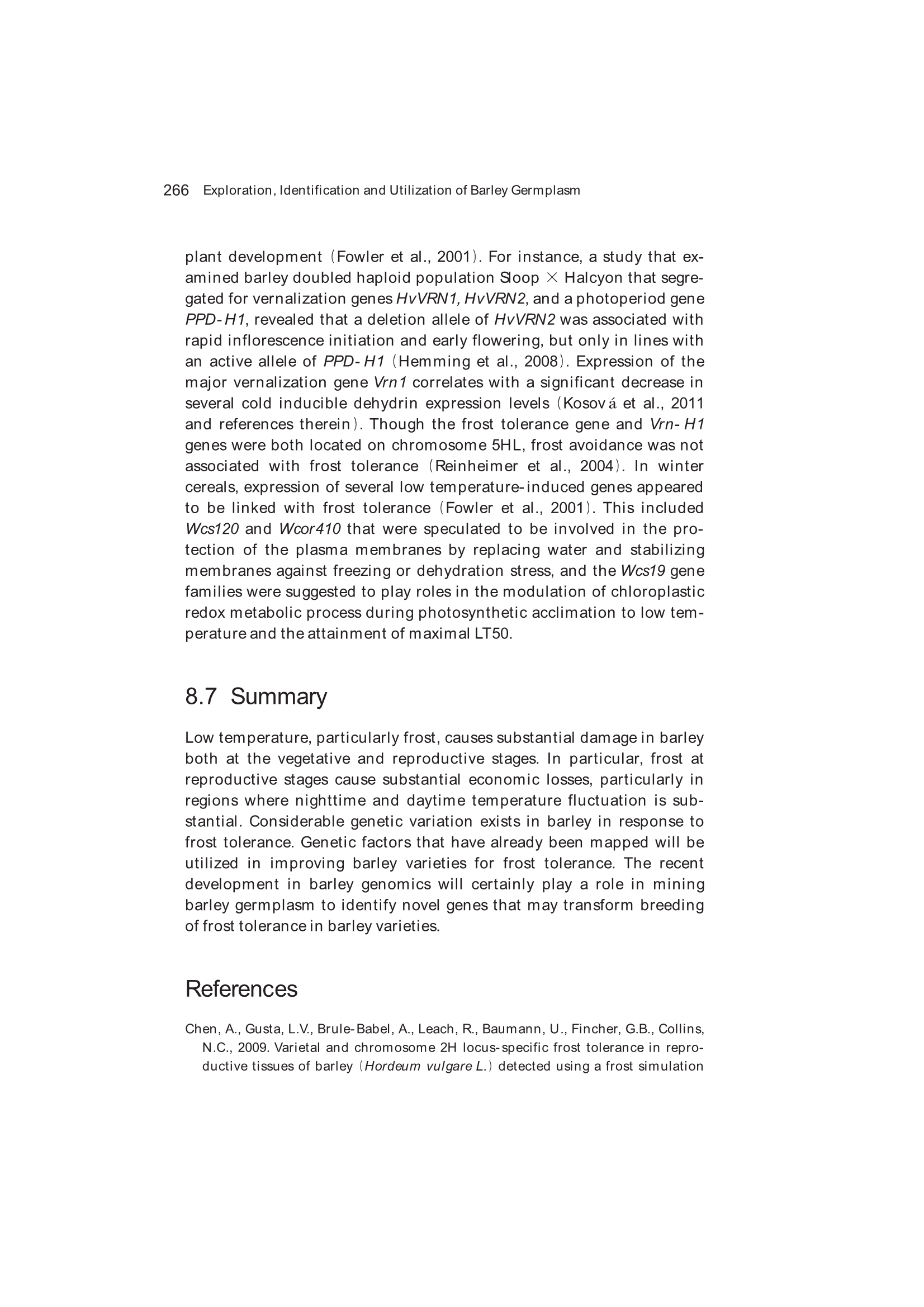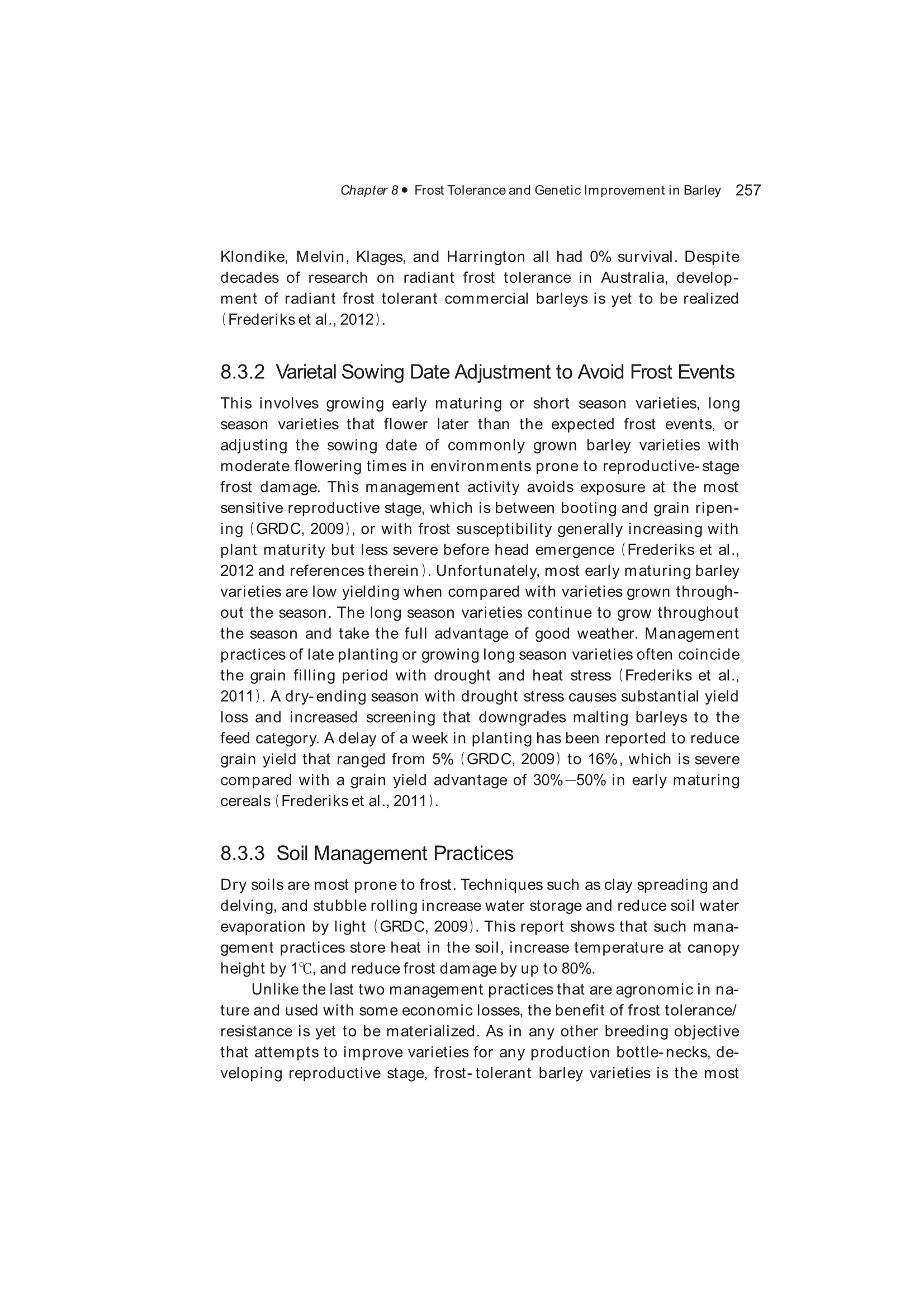 8.5 Genotypic Variation for Frost Tolerance in Barley