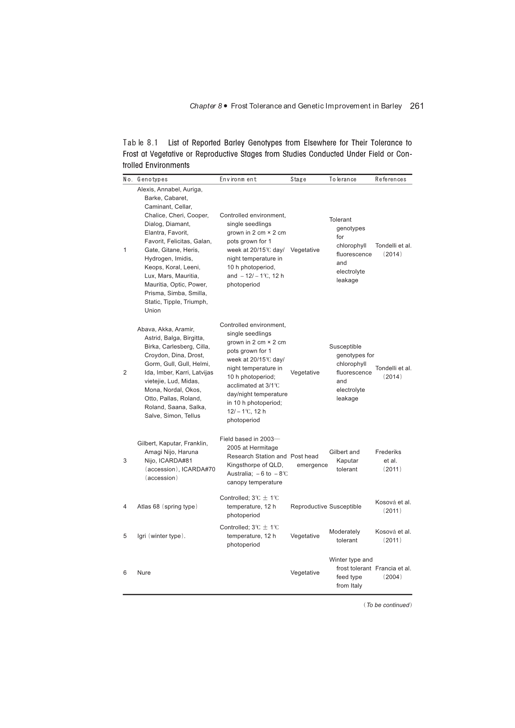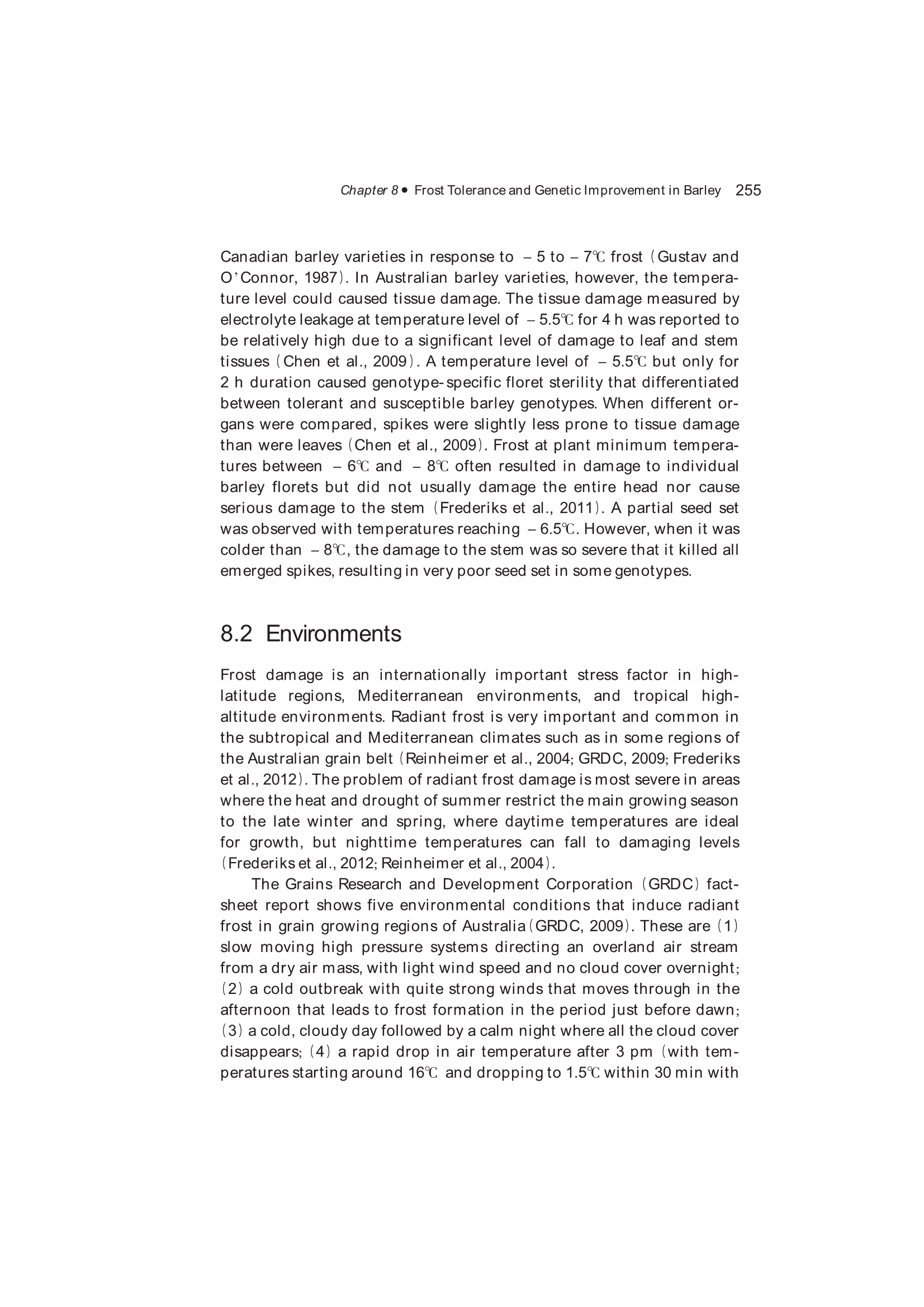 Exploration, Identification and Utilization of Barley Germplasm(《大麦种质资源创新与利用》):第8章 Frost Tolerance and Genetic Improvement in Barley