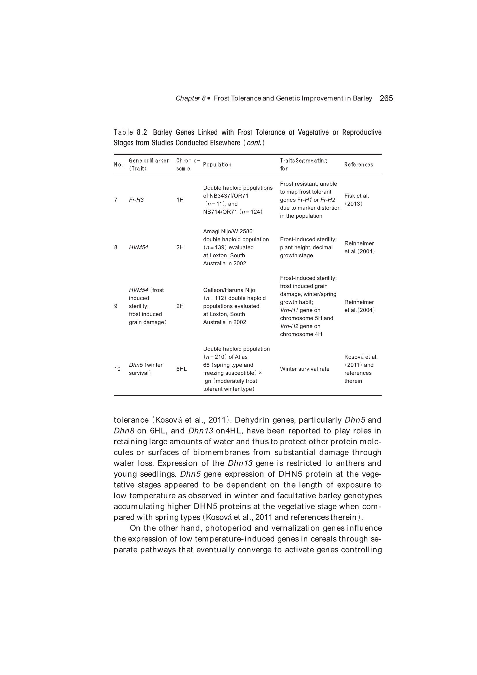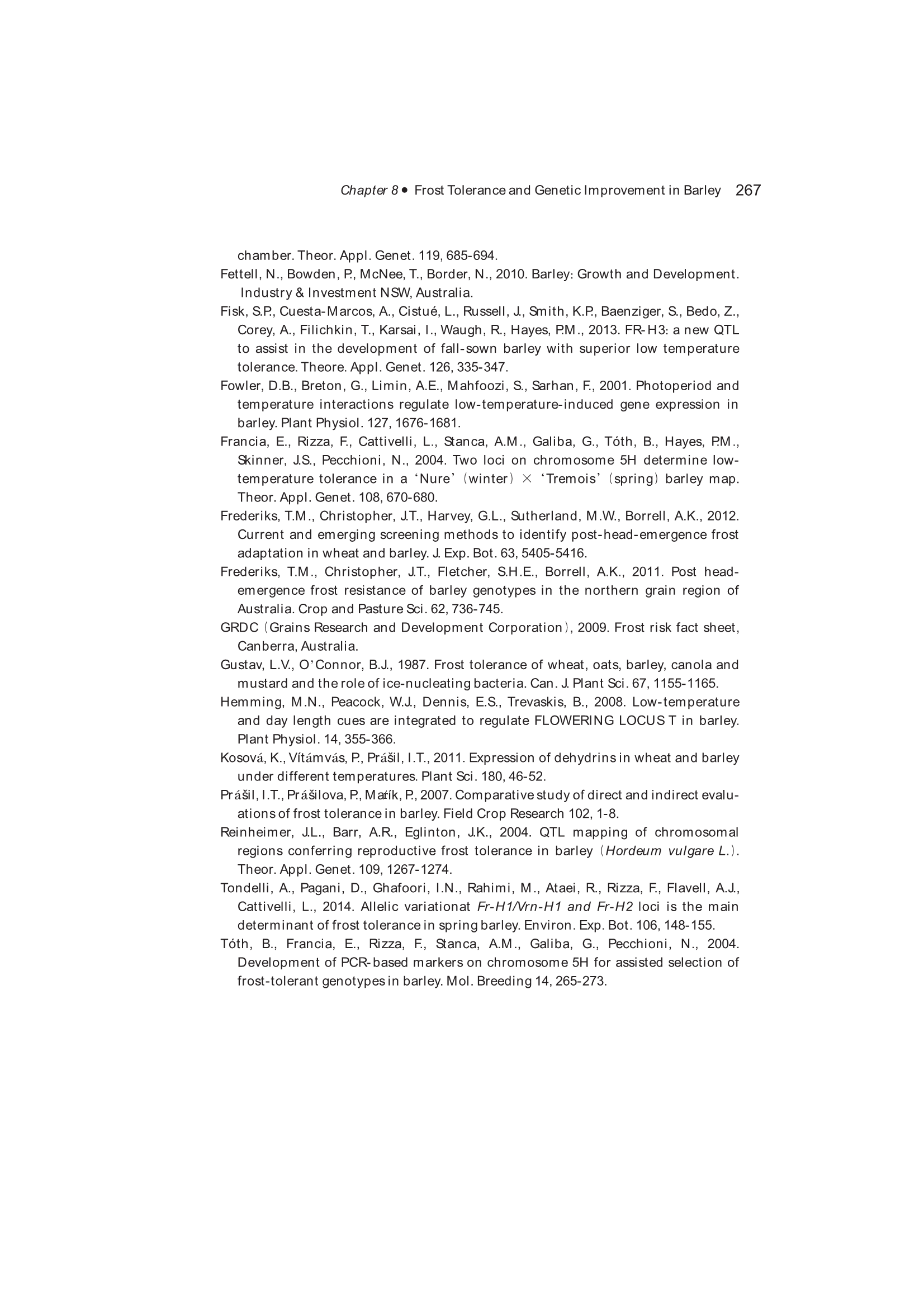 8.6 Genetic Factors Associated with Frost Tolerance in Barley