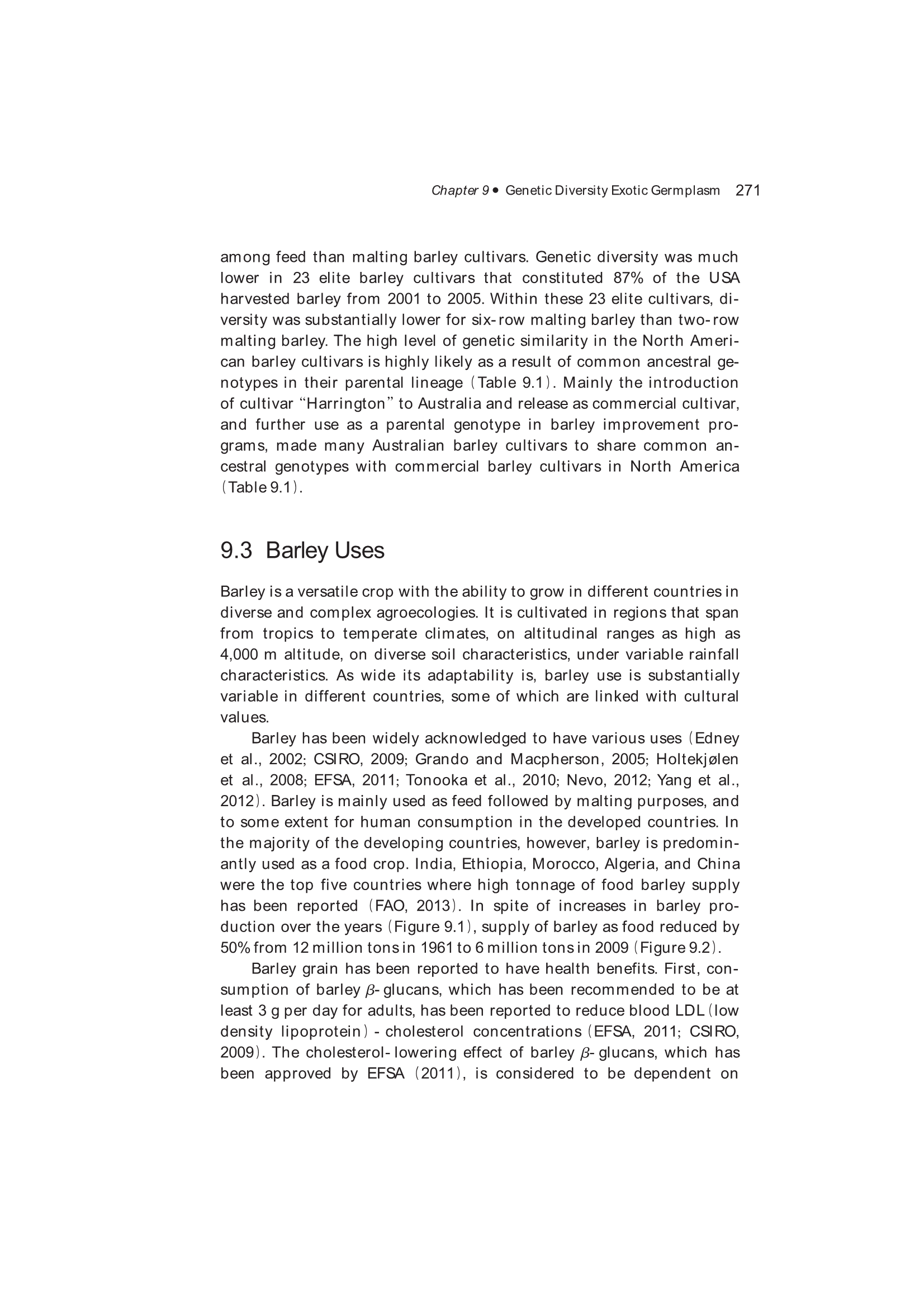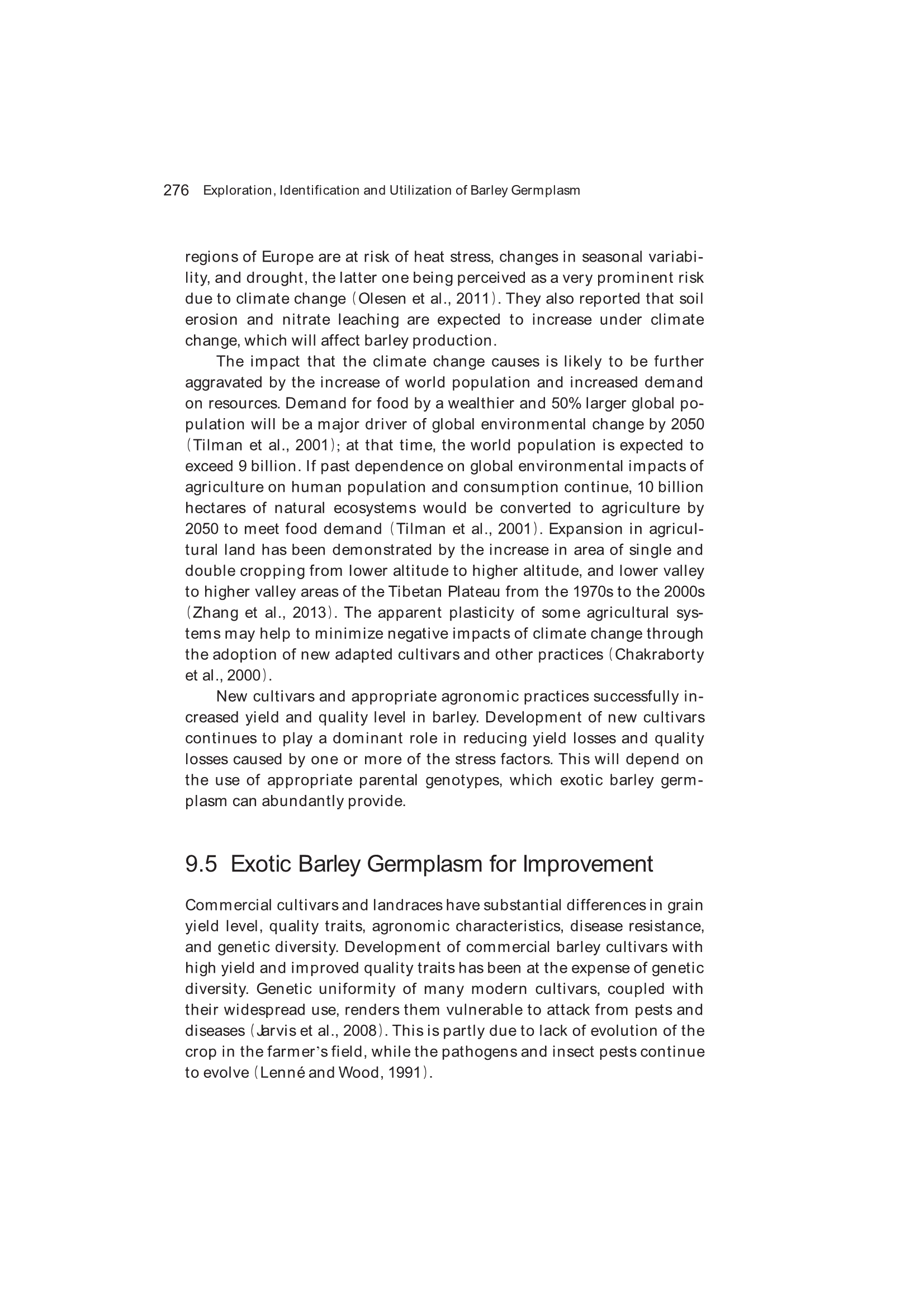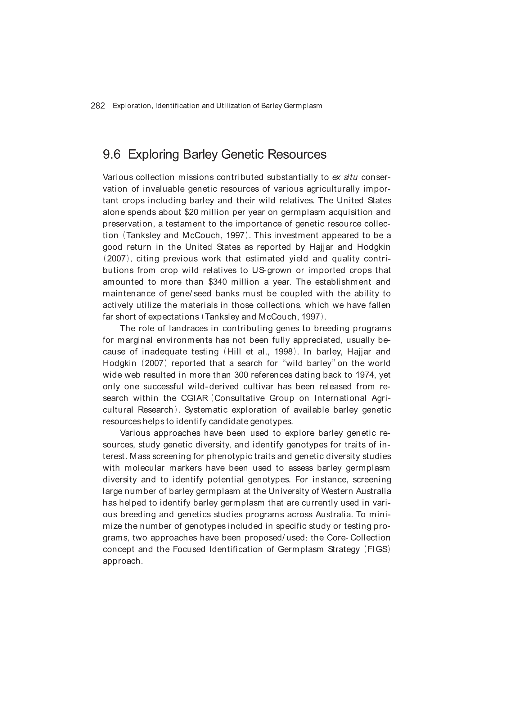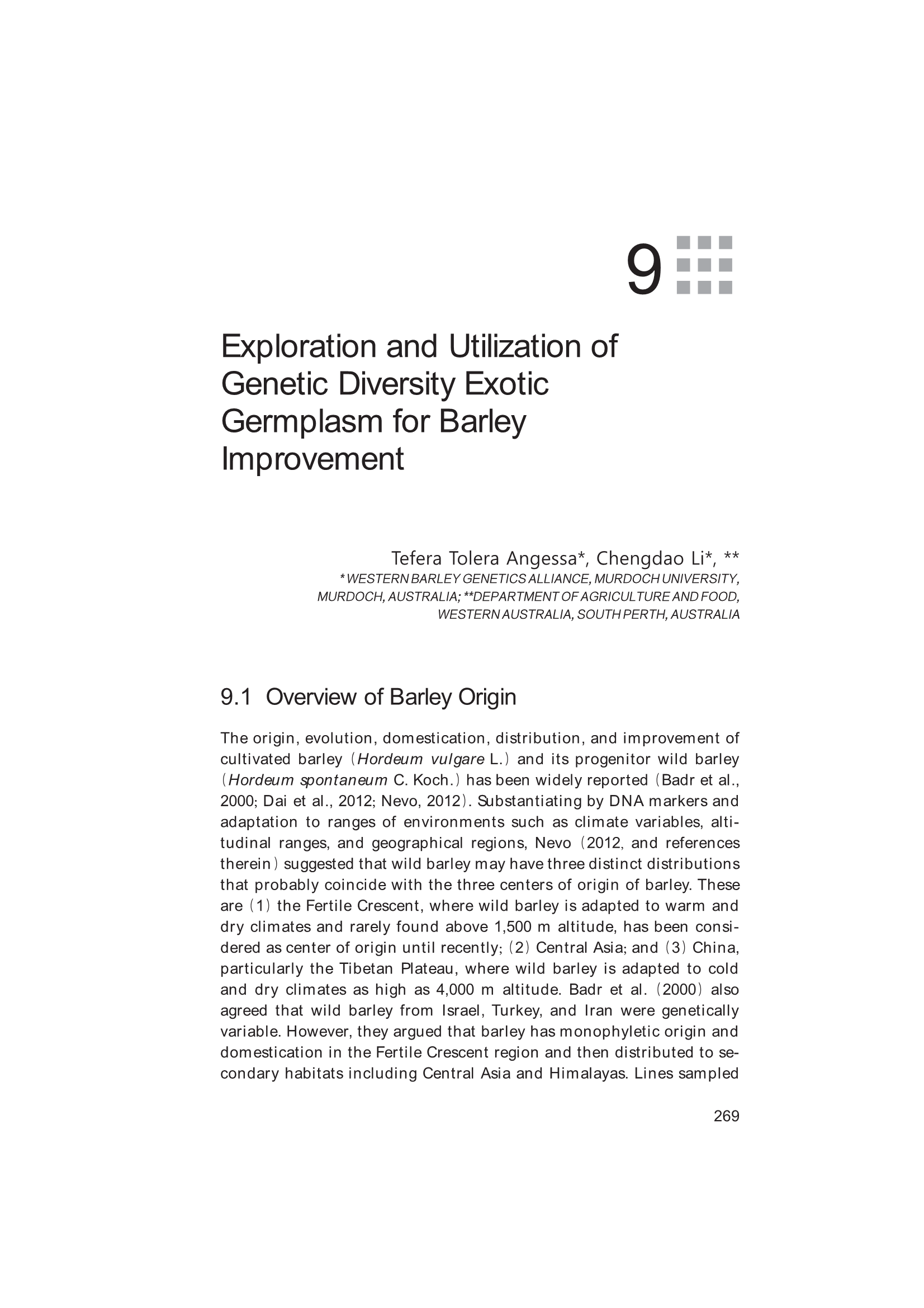 Exploration, Identification and Utilization of Barley Germplasm(《大麦种质资源创新与利用》):第9章 Exploration and Utilization of Genetic Diversity Exotic Germplasm for Barley Improvement