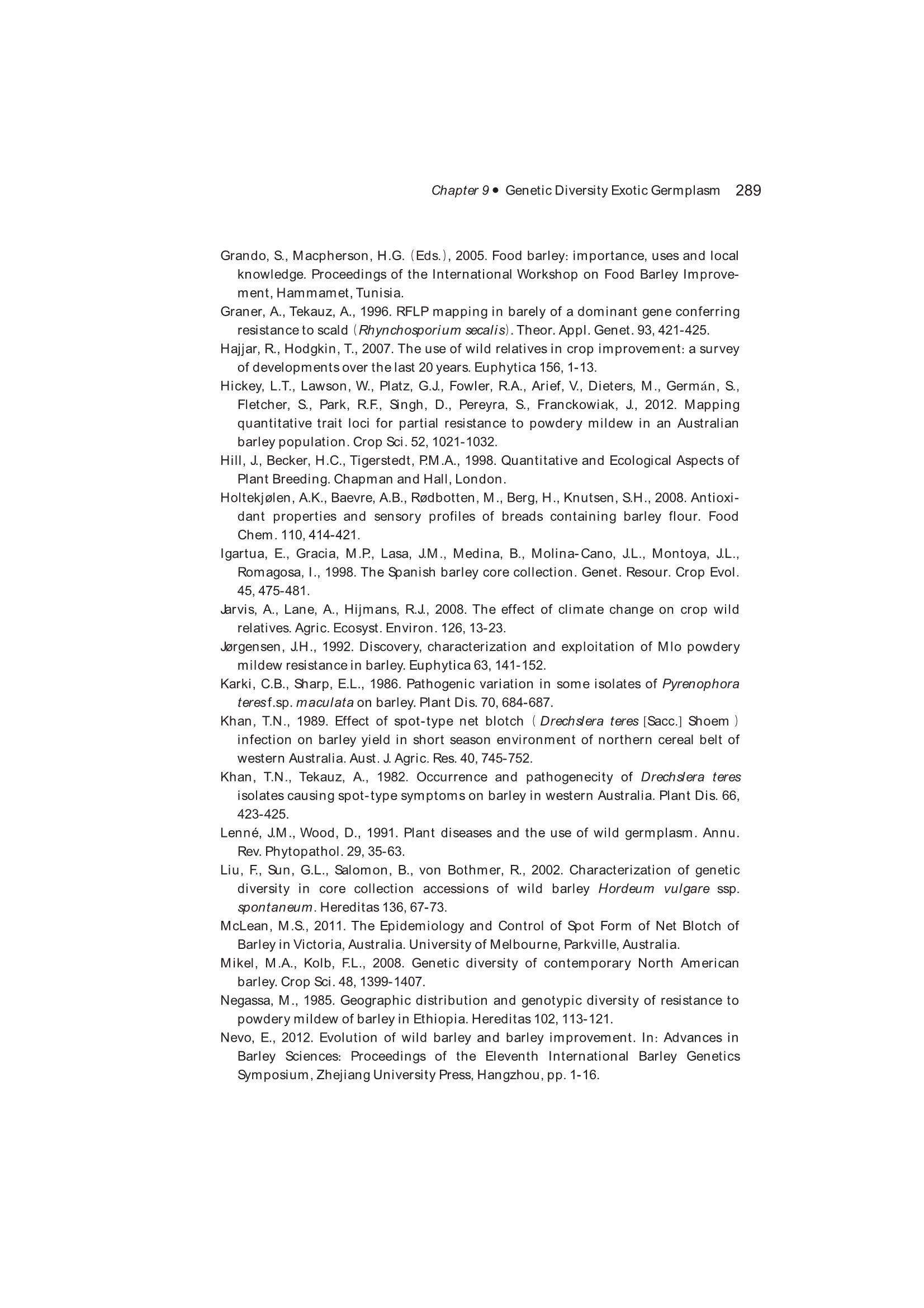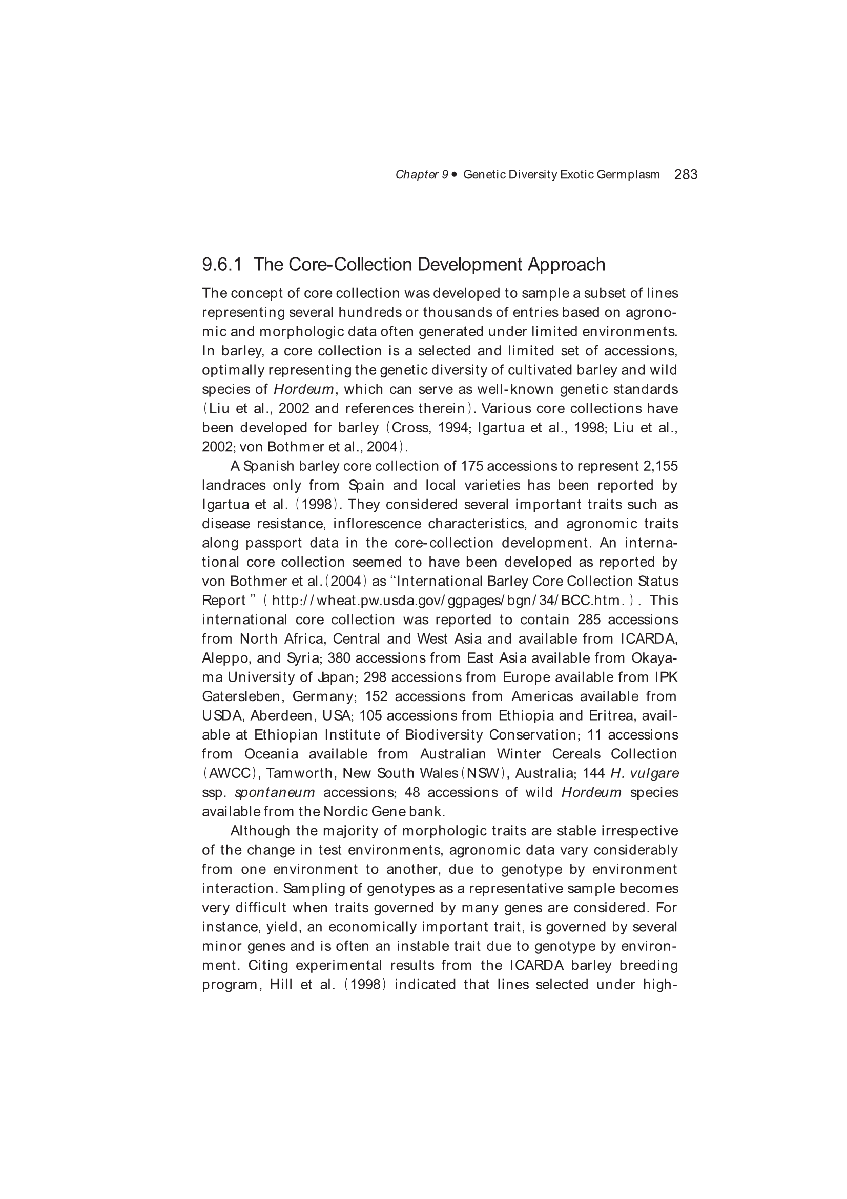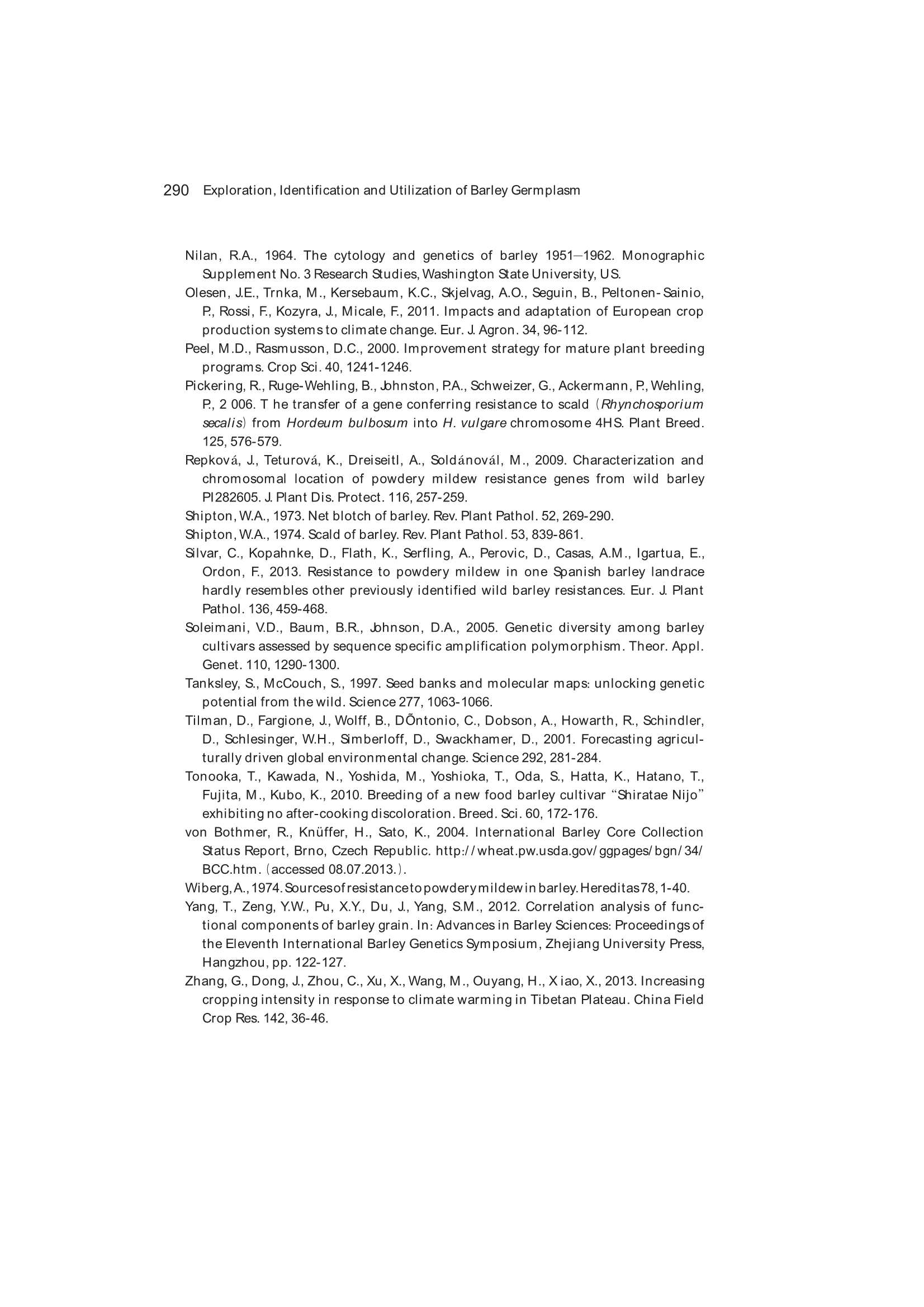 Exploration, Identification and Utilization of Barley Germplasm(《大麦种质资源创新与利用》):第9章 Exploration and Utilization of Genetic Diversity Exotic Germplasm for Barley Improvement
