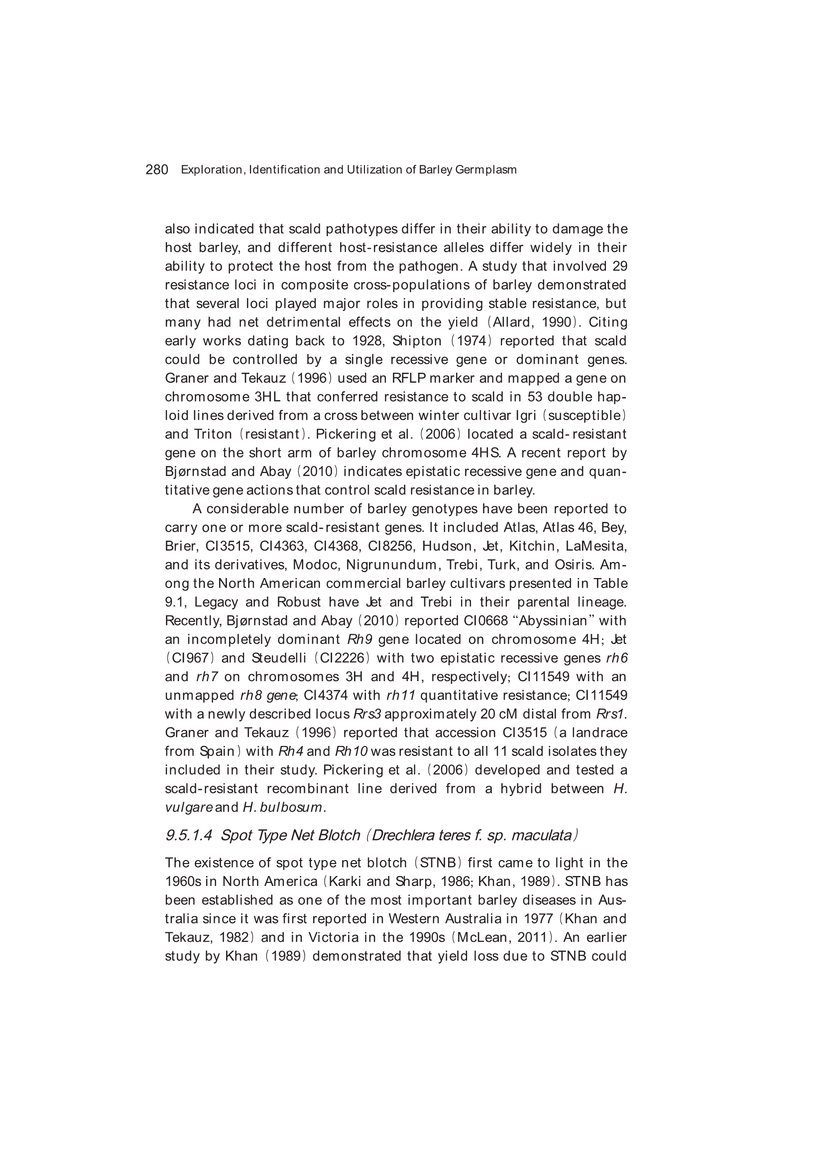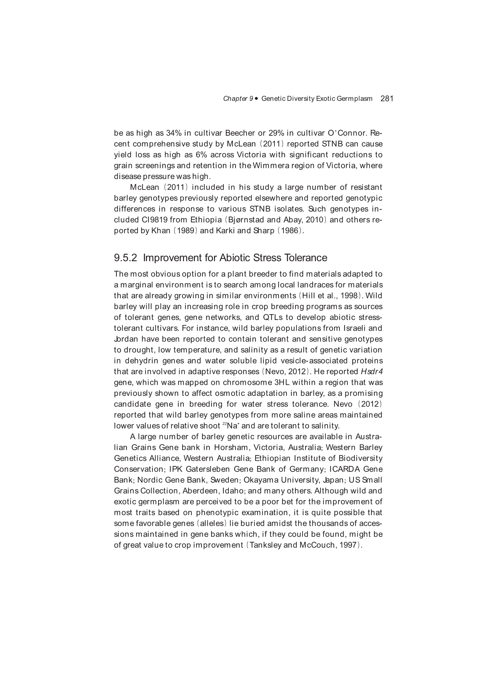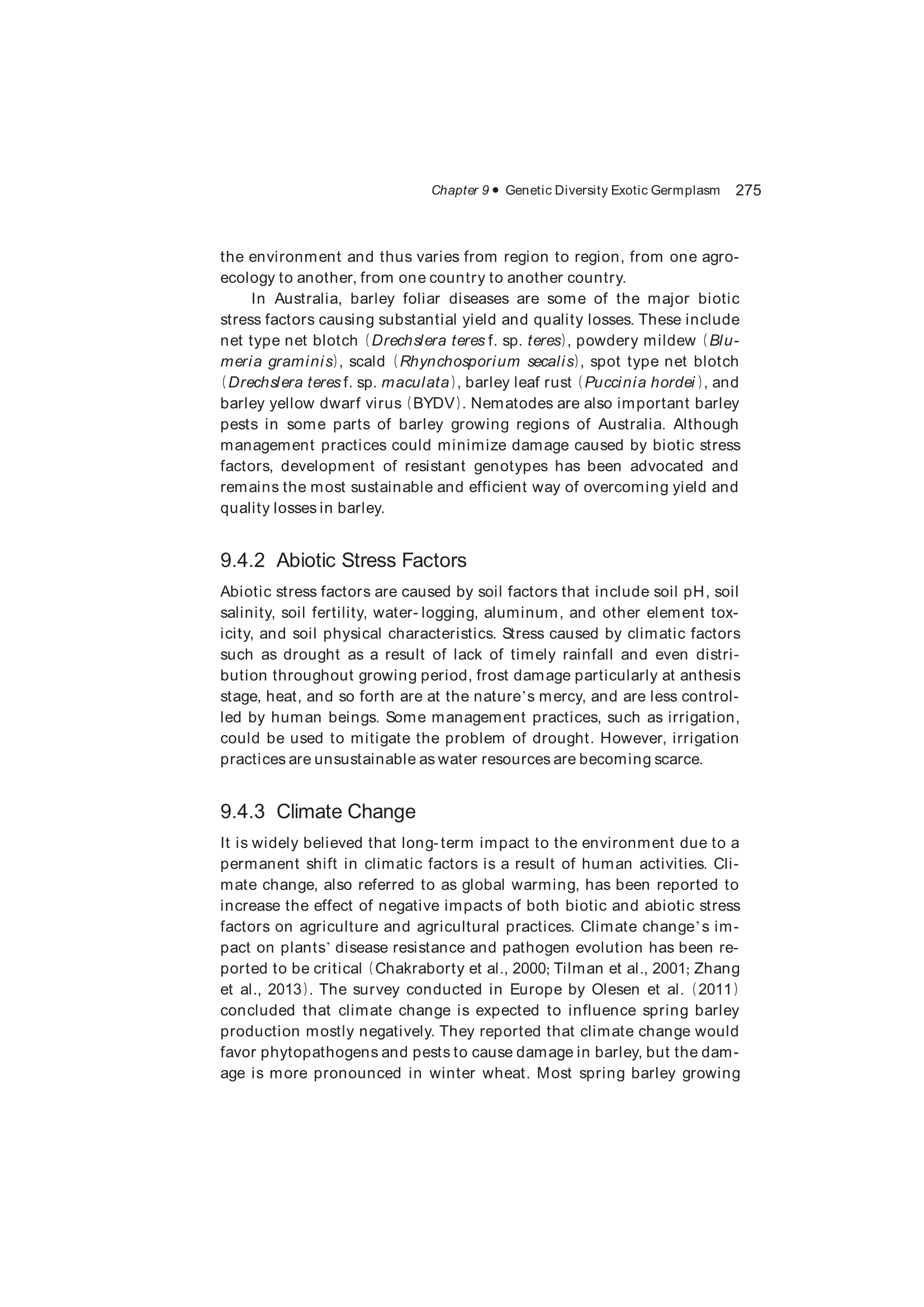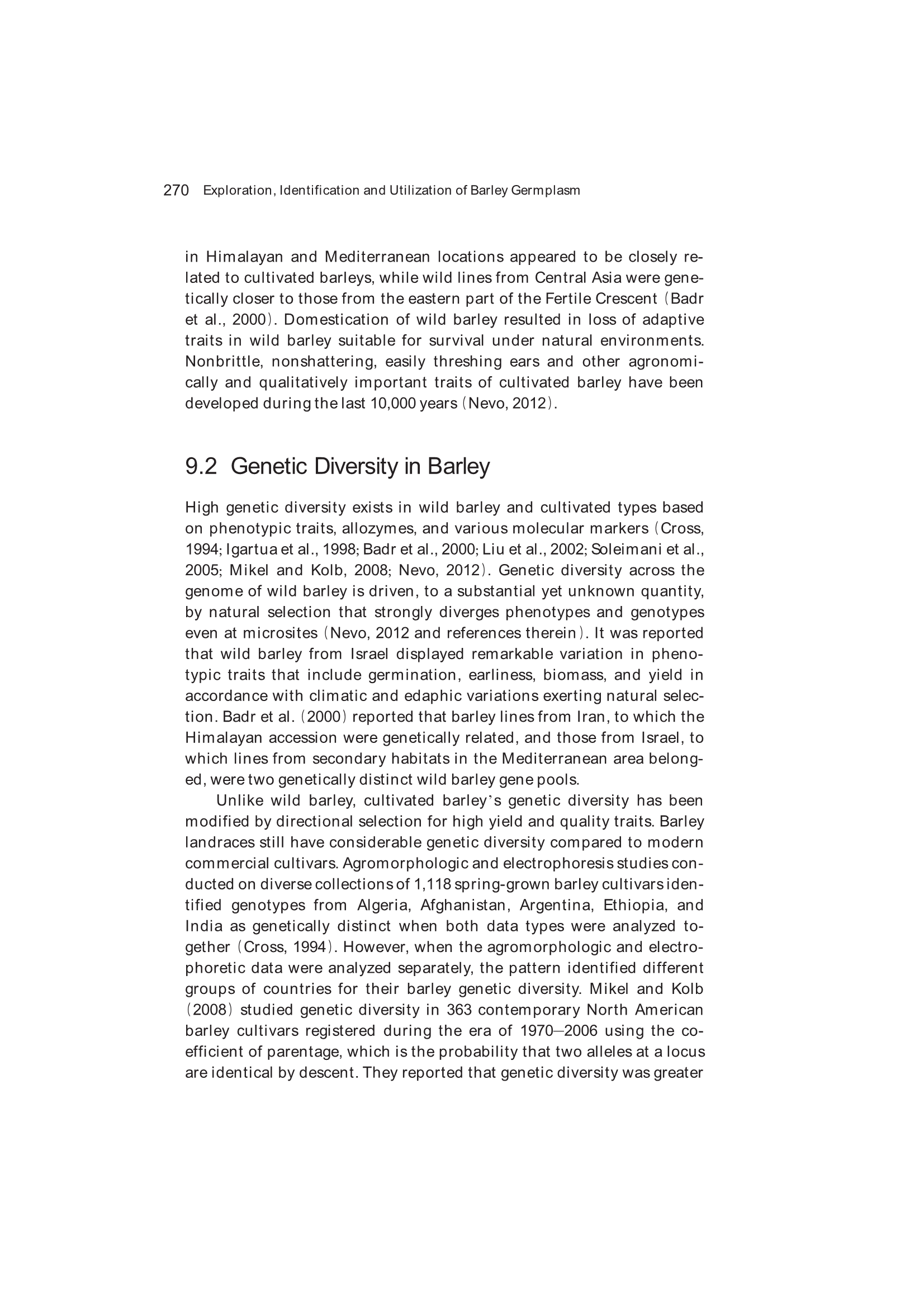 Exploration, Identification and Utilization of Barley Germplasm(《大麦种质资源创新与利用》):第9章 Exploration and Utilization of Genetic Diversity Exotic Germplasm for Barley Improvement