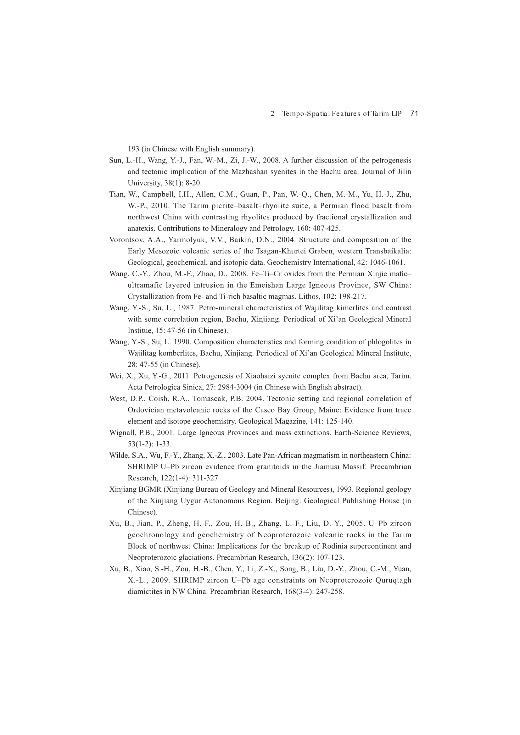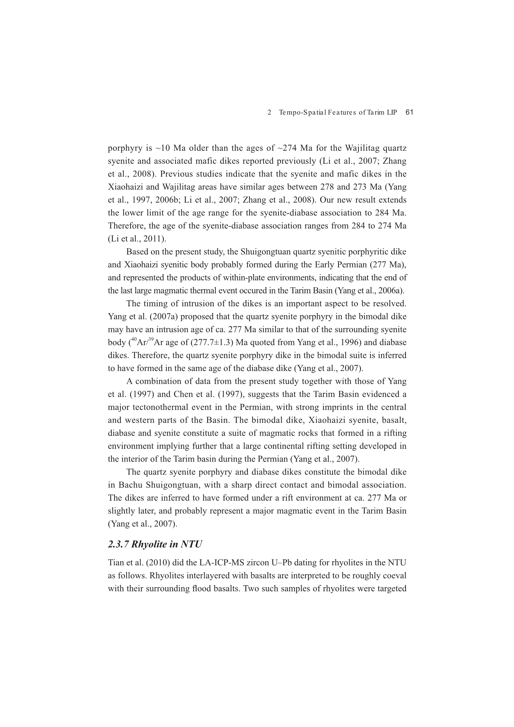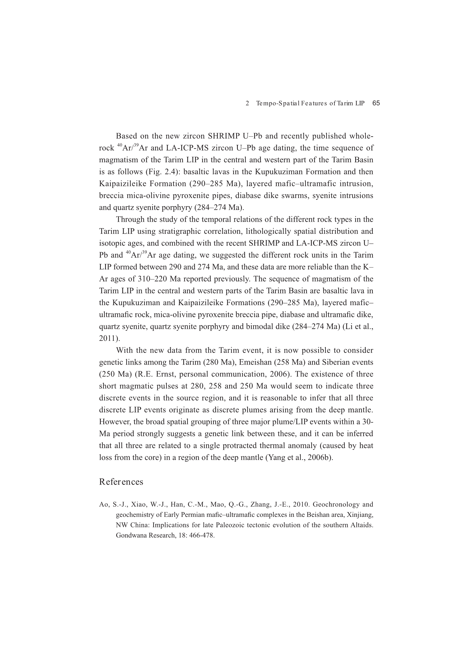 2.3 Time Sequence of the Tarim LIP