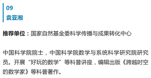 2023年3月26日,“典赞·2022科普中国”揭晓盛典特别节目在中央广播电视总台综合频道CCTV-1现场揭晓2022年度十大科普人物、十大科普作品、十大科普事件和十大科学辟谣榜。其中,由国家自然科学基金委员会科学传播与成果转化中心(以下简称传播与转化中心)组织,数理科学部推荐的袁亚湘院士在1213 项参评项目中脱颖而出,获得年度科普十大人物。