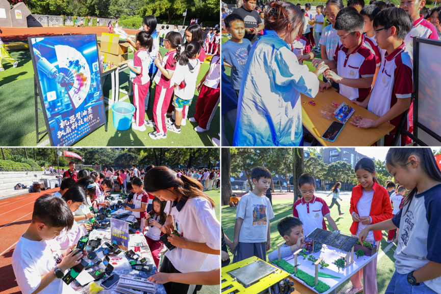 讲座后,还举办了户外科普体验活动,校园里设置AI与VR体验区、科技创意互动区和科技动手制作区三大科技项目体验区,人气爆棚,学子们穿梭其间,尽情畅享科技盛宴。