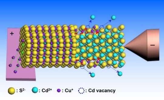 图.电驱动的阳离子交换方法用于制备单一异质纳米结构示意图