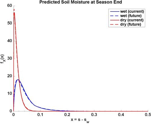 图3 降水变化情景下(Gaoet al., 2012)湿润季和干旱季末相对土壤含水量分布