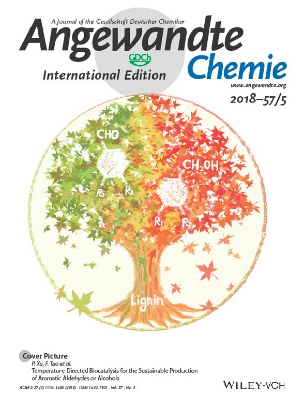 近期,国际著名学术期刊Angewandte Chemie International Edition以前封面文章(front cover)的形式发表了上海交通大学生命科学技术学院、微生物代谢国家重点实验室许平教授团队在可再生资源利用领域的最新研究进展“Temperature-directed biocatalysis for the sustainable production of aromatic aldehydes or alcohols”。陶飞副研究员为共同通讯作者,博士后倪俊和硕士生高琰琰为共同第一作者。