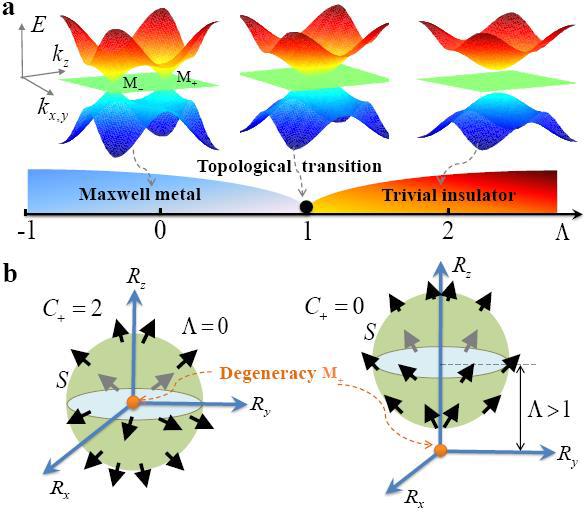 图2: 拓扑麦克斯韦金属的能带结构、相图和拓扑性质