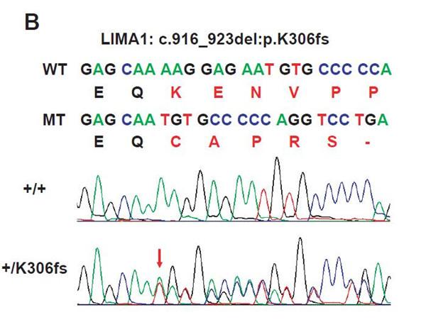 为揭示新的胆固醇调控基因,宋保亮课题组与马依彤团队合作,在针对新疆人群心脑血管疾病的风险调查中,发现了一个家族性低LDL-C的哈萨克族人家系,通过全基因组外显子测序和基因关联性分析,发现LIMA1基因罕见移码突变(K306fs)与低LDL-C显著相关。深入研究发现,LIMA1特异性表达在小肠上,通过与NPC1L1蛋白(该通路也由宋保亮团队前期工作系统揭示)互作将后者锚定到肌球蛋白Myosin Vb上,从而调控小肠胆固醇的吸收。