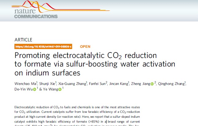 厦门大学化学化工学院王野课题组与吴德印课题组合作,在二氧化碳电催化还原制甲酸的研究上取得重要突破,相关成果“Promoting electrocatalytic CO2 reduction to formate via sulfur-boosting water activation on indium surfaces”发表于Nature Communications(Nat. Commun. 2019, DOI: 10.1038/s41467-019-08805-x)。 将CO2电催化转化成燃料和化学品具有重要意义,得到广泛的关注。甲酸作为一种重要的工业原料,在制药、皮革和造纸方面都有重要应用,还可以作为氢载体用于直接甲酸燃料电池。目前,CO2电催化还原制甲酸虽然可以获得较高的法拉第效率,但其高法拉第效率通常仅能在较低活性下实现,并且电位或电流的改变将显著影响其法拉第效率,这导致工业上关注的甲酸生成速率难以提高。 一般认为,H2O还原析氢反应是CO2还原反应的竞争反应,若促进H2O活化将降低CO2还原反应的法拉第效率。因此,基于该认识设计出的高CO2还原法拉第效率的催化剂常常活性低。王野课题组打破这种认识,提出H2O分子活化在CO2还原中起着重要的作用,成功合成出硫修饰In催化剂来活化H2O分子而促进CO2还原制甲酸的新方法,该催化剂在非常宽的电流密度范围内(25~100 mA cm-2),均可以维持85%以上的甲酸法拉第效率。在93%的甲酸法拉第效率下,甲酸的生成速率可达1449 mmol h-1 cm-2,突破了目前CO2电催化还原制甲酸生成速率的极限(1000 mmol h-1 cm-2)。 王野课题组一直致力于C1化学领域的基础研究。在CO2、合成气、甲醇等小分子的催化转化方面,取得了一系列重要突破(Nat. Catal. 2018, 1, 787; Nat. Commun. 2018, 9, 1181; Angew. Chem. Int. Ed. 2018, 57, 12012; Chem 2017, 3, 334; Angew. Chem. Int. Ed. 2016, 55, 4725; Angew. Chem. Int. Ed. 2015, 54, 4553; Angew. Chem. Int. Ed. 2013, 52, 5776; Angew. Chem. Int. Ed. 2012, 51, 2438; Angew. Chem. Int. Ed. 2011, 50, 5200)。 该研究工作实验部分主要由王野、张庆红教授指导,能源材料化学协同创新中心iChEM2016级博士生马文超、固体表面物理化学国家重点实验室高级工程师谢顺吉(共同第一作者)完成;理论计算部分由吴德印教授指导,2015级博士生张霞光(共同第一作者)完成。醇醚酯国家工程实验室高级工程师康金灿参与了部分实验表征。上海光源姜政教授和孙凡飞博士为同步辐射表征提供了支持。研究工作得到科技部重点研发计划(批准号:2017YFB0602201)和国家自然科学基金(批准号:21690082、91545203、21503176)等项目的资助。 论文链接:https://www.nature.com/articles/s41467-019-08805-x 课题组主页:http://pcoss.xmu.edu.cn/wangye/ (化学化工学院) 责任编辑:黄伟彬 |