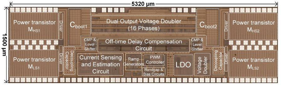 无线充电作为未来充电技术的发展方向,在消费电子、生物医疗电子、物联网以及电动汽车等方面具有广阔的应用前景,近年来得到了学术界和工业界的高度关注。与传统有线充电具有稳定的直流电压相比,无线充电首先需要对交流输出电压进行整流和稳压。由于经过多级功率处理,充电效率大大降低,并且严重限制了充电功率。针对无线充电芯片设计领域提高转换效率和降低成本的研究热点,该研究基于3-Mode可重构谐振调节整流器的原理,通过在单个功率级中实现整流、稳压和恒流-恒压充电功能,克服了现有芯片设计中需要两级或三级级联的缺点,从而大大提高了芯片转化效率和集成度。此外,该研究中还提出了一种片上栅压自举技术,采用了一种自适应相位数控制的单输入双输出倍压器,将自举电容集成在芯片上,进一步提高了芯片的集成度。最终测试结果表明该无线充电芯片在充电电流为1A和1.5A时,峰值效率分别可以达到92.3%和91.4%,验证了所提技术的有效性。