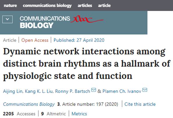 4月27日,Nature期刊Communications Biology(通讯生物学)在线发表了北京交通大学与哈佛大学、波士顿大学、巴伊兰大学等共同合作完成的题为“Dynamic network interactions among distinct brain rhythms as a hallmark of physiologic state and function”的最新研究成果。论文研究了健康个体睡眠脑电波各个脑节律间的复杂交互作用机制,发现了完整的脑节律交互作用图谱,为神经生理调节机制提供了新视角,具有广泛的临床意义。
