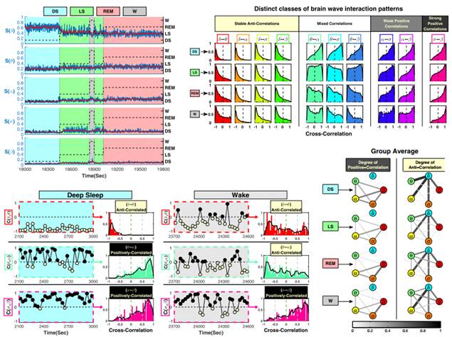 研究表明,单一脑节律或特定成对脑节律间的交互作用并不能完全描述生理状态与功能,而所有脑节律间的持续调节机制作为一个复杂网络能更为全面地描述生理状态与功能。在小尺度上的脑波调制微观结构(传统上被认为是噪音)蕴含着脑波交互作用的重要信息。研究发现了脑波交互作用的整体关键图谱,并在不同大脑区域和个体具有鲁棒性。