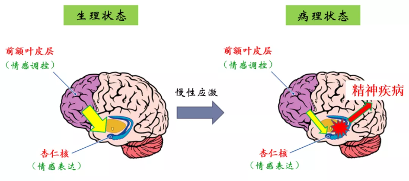 这一系列研究表明,慢性应激引起前额叶皮层背内侧区-杏仁核基底外侧区-腹侧海马区(dmPFC-BLA-vHPC)环路结构与功能异常在其损害大脑情感功能中发挥重要作用,这为全面阐明应激相关精神疾病的发病机理提供了重要的实验证据。
