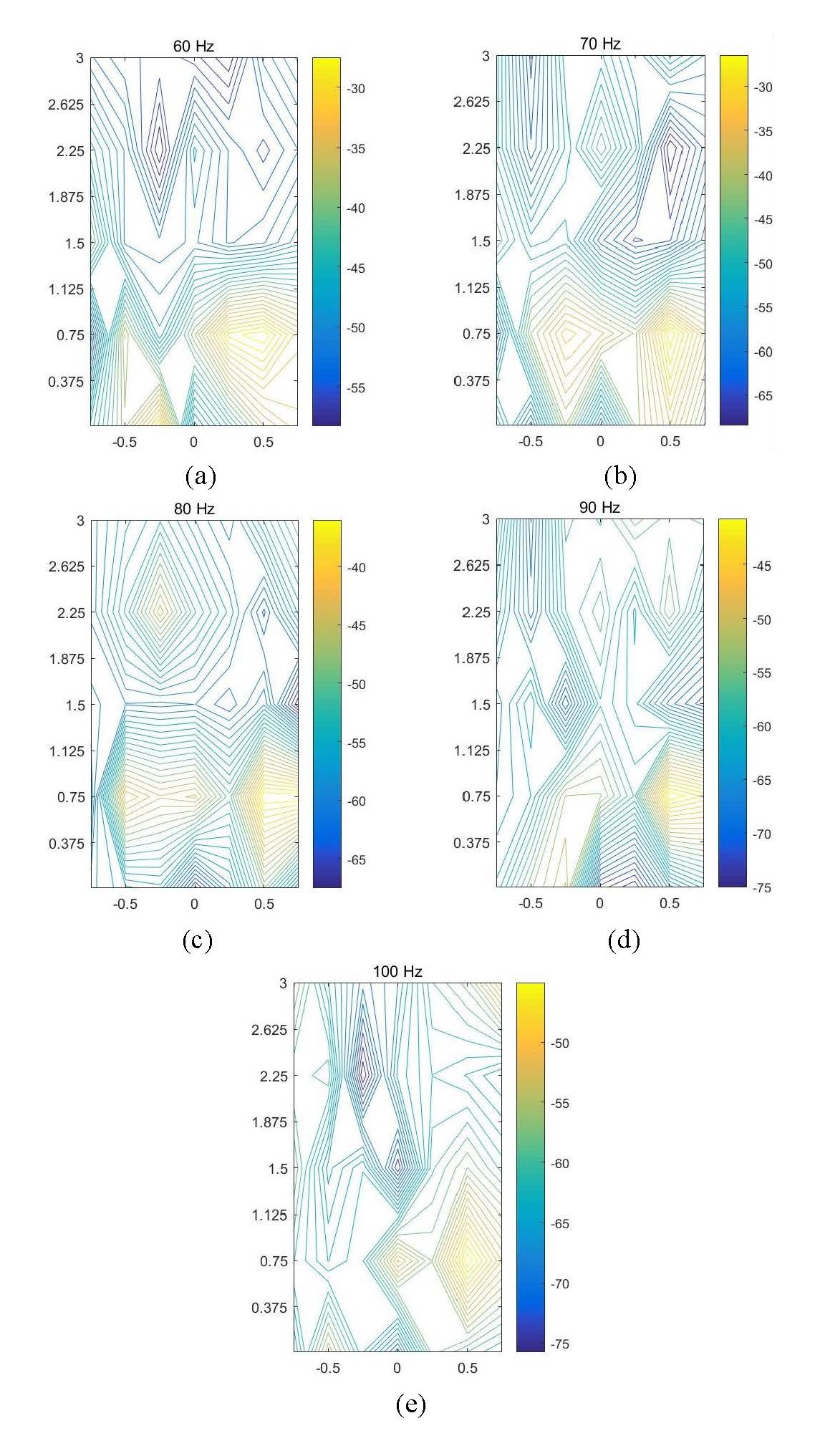 图1 不同频率下地表振动的幅值谱等值线图(图/中科院声学所)