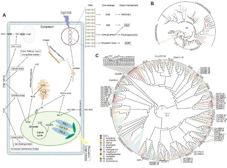 图3. 南极衣藻适应多种非生物胁迫的策略
