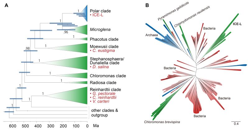 图2. 南极衣藻的分化时间及水平基因转移事件