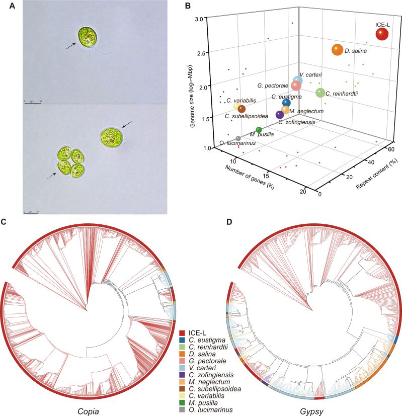 图1. 南极衣藻形态及基因组特征