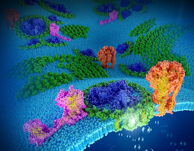 图1. 高光适应的蓝藻光合膜超分子结构模型图。