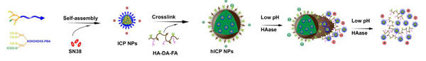 药植所廖永红研究员团队设计了一种基于主动靶向、能在肿瘤细胞内实现大小转换的纳米系统。该纳米给药系统由两亲性十六肽衍生物自组装制备的载化疗药物SN-38的带正电小纳米胶束(ICP NPs, < 30 nm),小粒径胶束进一步被叶酸和多巴胺修饰的透明质酸(HA-DA-FA)包裹,形成带负电的大纳米粒子(hICP NPs, ~130 nm),发现:细胞内大小可转换的纳米系统可促进了胞吞作用介导的肿瘤渗透,并改善了纳米颗粒的细胞内化和SN-38的细胞内释放。该纳米系统具有多模态和高效的肿瘤渗透性,结合光声成像、近红外激光诱导药物释放、协同化疗和光疗,导致皮下B16黑色素瘤模型中的完全治愈率高达50%。2020年2月25日,相关研究成果“Size-Transformable Hyaluronan Stacked Self-Assembling Peptide Nanoparticles for Improved Transcellular Tumor Penetration and Photo–Chemo Combination Therapy”发表于ACS Nano(2019年IF 14.59),并在相关门户网站报道。该研究为纳米制剂在减毒增效方面的应用提供了重要基础。
