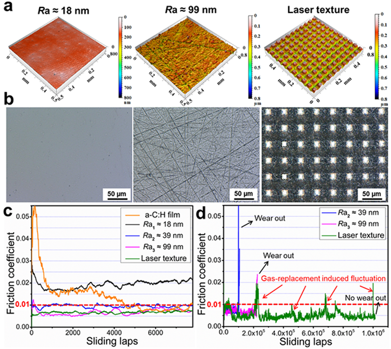 近期,中国科学院兰州化学物理研究所磨损与表面工程课题组提出宏观尺度实现“结构超润滑”表/界面设计的新方法,在工程基材表面、宏观接触条件下获得了鲁棒超润滑性能, 实现了“结构超润滑”由微纳尺度向宏观工程尺度的迈进,对推动超润滑新概念技术实现工程应用具有重要意义。
