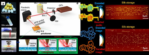 图1. 基于近场红外纳米光刻的蚕丝蛋白信息存储技术