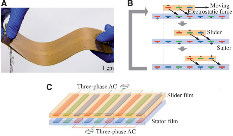 图1. 静电薄膜电机的工作原理。