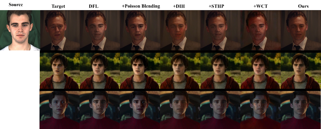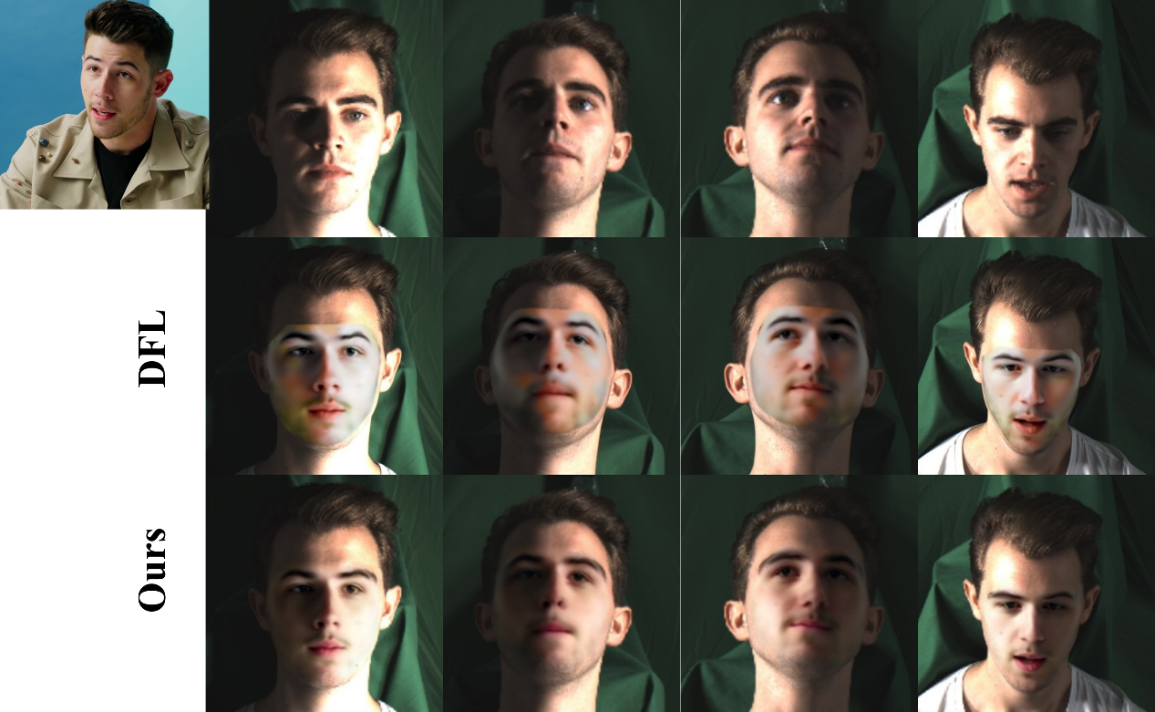 图1. 复杂光照条件下,DeepFaceLab (左)和新方法(右)对比图