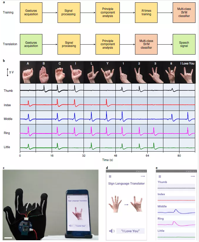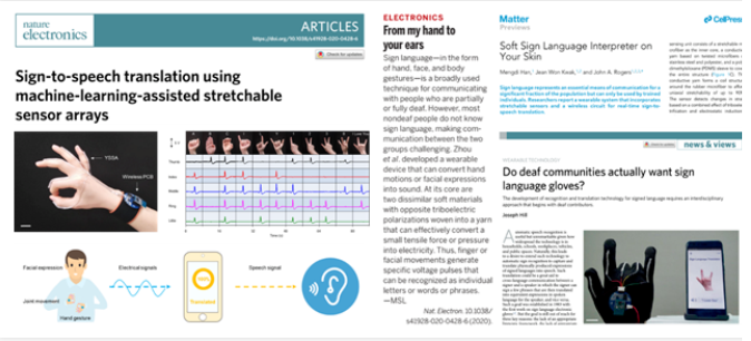 手语是聋哑人与外界沟通最重要也是最直接的方式。据世界聋人联合会(WFD)公布的数据,全世界目前大约有7000万聋哑人。然而,由于手语的普及程度较低,大多数人并不具备手语基础,因此无法准确理解手语含义,进而导致聋哑人在日常交流中面临诸多障碍。而现有的手语翻译系统在实际应用中又存在灵敏度低、响应时间长、可穿戴性差、工艺复杂、成本高昂等问题。