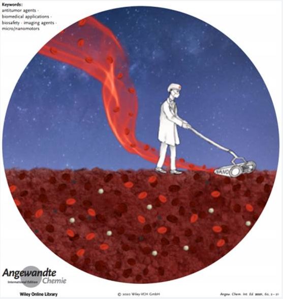 基于生物医用微纳米机器人方向的系列研究工作,该课题组又在材料和化学领域的旗舰期刊Angewandte Chemie International Edition上发表了题为“Biosafety, Functionalities and Applications of Biomedical Micro/nanomotors”的综述。在该综述中,首先较为全面地总结了微纳米机器人作为一种生物医学治疗体系的生物安全性需求和功能性汇总,然后对人体多种疾病(如眼科疾病、骨科疾病、胃肠道疾病、心血管疾病、癌症等)的形成特点、治疗难点以及微纳米机器人技术的介入应用进行了评述,并回顾了20年来生物医学微纳机器人的研究进展,最后提出该领域面临的挑战和可能的发展方向。论文的第一作者/共同通讯作者为化科院万密密副教授。
