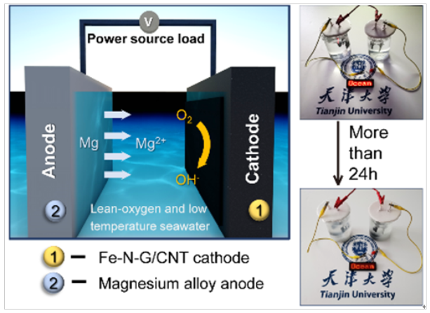 深海能源供应是认识海洋、实现“海洋强国”的重要前提。如何在深海极端环境和能源“荒地”上发展高效能源转化技术已成为科研工作者面临的重大挑战。近日,我校海洋科学与技术学院凌国维副教授、张辰博士与化工学院杨全红教授共同提出了面向深海贫氧环境海水电池高效亲氧催化剂的设计策略,并实现了在海水中的长周期运行,相关研究成果发表在能源材料领域国际权威期刊《Advanced Energy Materials》上。该研究提出了面向贫氧环境和海水复杂环境下的亲氧催化剂设计理念,为新型电催化剂设计提供了新的思路,为海水电池实用化提供了重要支撑。