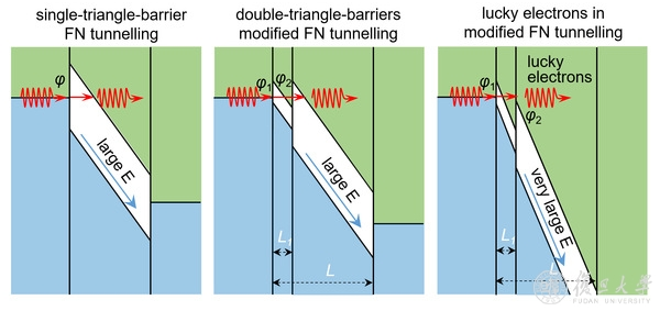 图1.双三角隧穿势垒超快电荷存储机理示意图