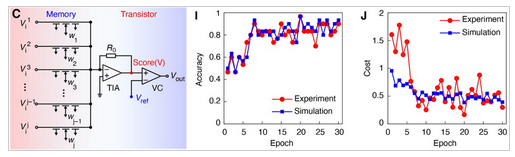 图2:基于同质晶体管-存储器架构的神经形态硬件实现了二值分类算法