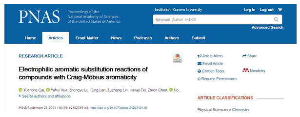 近日,化学化工学院张弘教授和夏海平教授课题组原创的碳龙化学取得重要进展,相关成果以“Electrophilic Aromatic Substitution Reactions of Compounds with Craig-Möbius Aromaticity”为题发表于《美国国家科学院院刊》(PNAS, 2021, 118, e2102310118)。