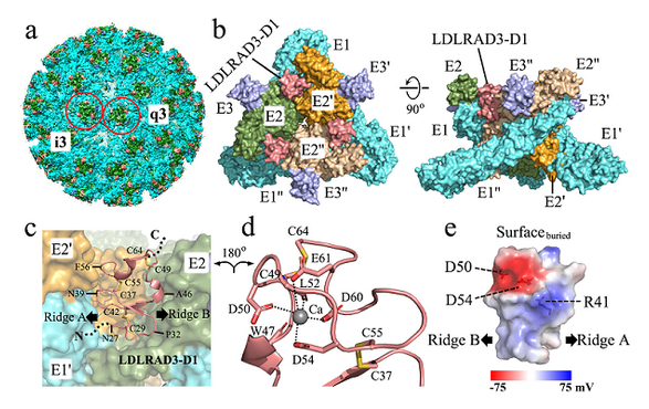 图1. VEEV VLP与受体复合物的高分辨率结构及相互作用