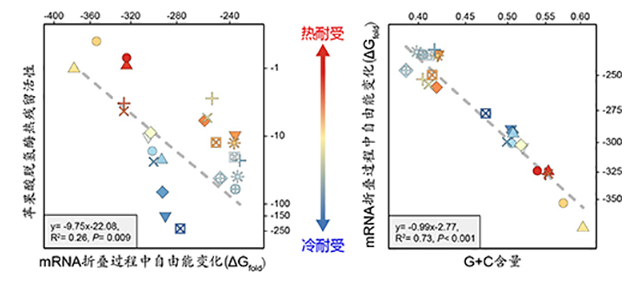 蛋白质的稳定性与其mRNA的能量变化密切相关(左图),