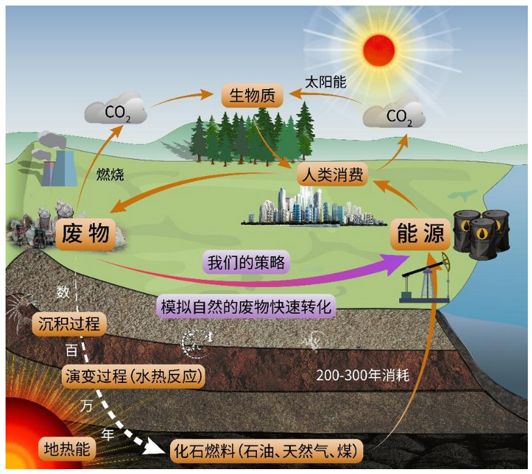 上海交通大学环境科学与工程学院金放鸣团队,长期致力于模拟自然,加速地球碳循环的研究,金放鸣教授是最早研究利用水热反应资源化处理有机废物和CO2的学者之一。 当前,全球范围内已逐渐形成了以“碳中和”为代表的绿色与可持续发展共识,我国也提出了30、60 “碳达峰、碳中和”的目标和愿景。纵观地球碳循环,日益加剧的能源和气候问题的本质是化石能源消耗过快(200-300年)与碳资源自然演化缓慢(千百万年)的矛盾导致的碳循环失衡。当前主流的节能减排对策着眼于降低有机碳向无机碳的转化,是解决碳失衡的重要手段,但难以平衡节能减排与经济发展之间的矛盾。从长远观点看,加快二氧化碳资源化,促进无机碳向有机碳资源转化,是加快地球碳循环的另一捷径,可望达成人类快速发展与自然和谐稳定共存的新型碳平衡,从而解决气候和能源问题、实现人类社会高质量发展。基于此理念,金放鸣教授团队坚持独特的加速地球碳循环原创研究,围绕模拟化石燃料非生物成因途径,开展了一系列水热资源化转化CO2的前沿探索研究。