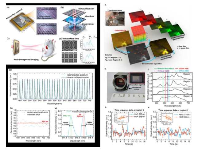 光谱作为物质的指纹,光谱成像可以获取成像视场内各像素点物质的组分和含量,为智能感知技术开拓了一个新的信息维度,在工业自动化、智慧医疗、机器视觉、消费电子等诸多领域有着巨大的应用需求。然而传统基于分光原理的单点光谱仪体积庞大,已有的光谱成像技术一般只能采用逐点逐行扫描或波长扫描的模式,无法获取视野场景中各像素点高精度的实时光谱信息。